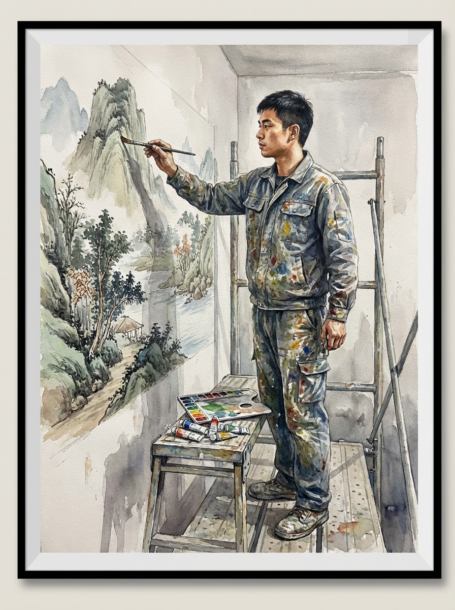 model as water color on paper, master painter painting a mural, highly detailed, artstation, masterpiece, award - winning