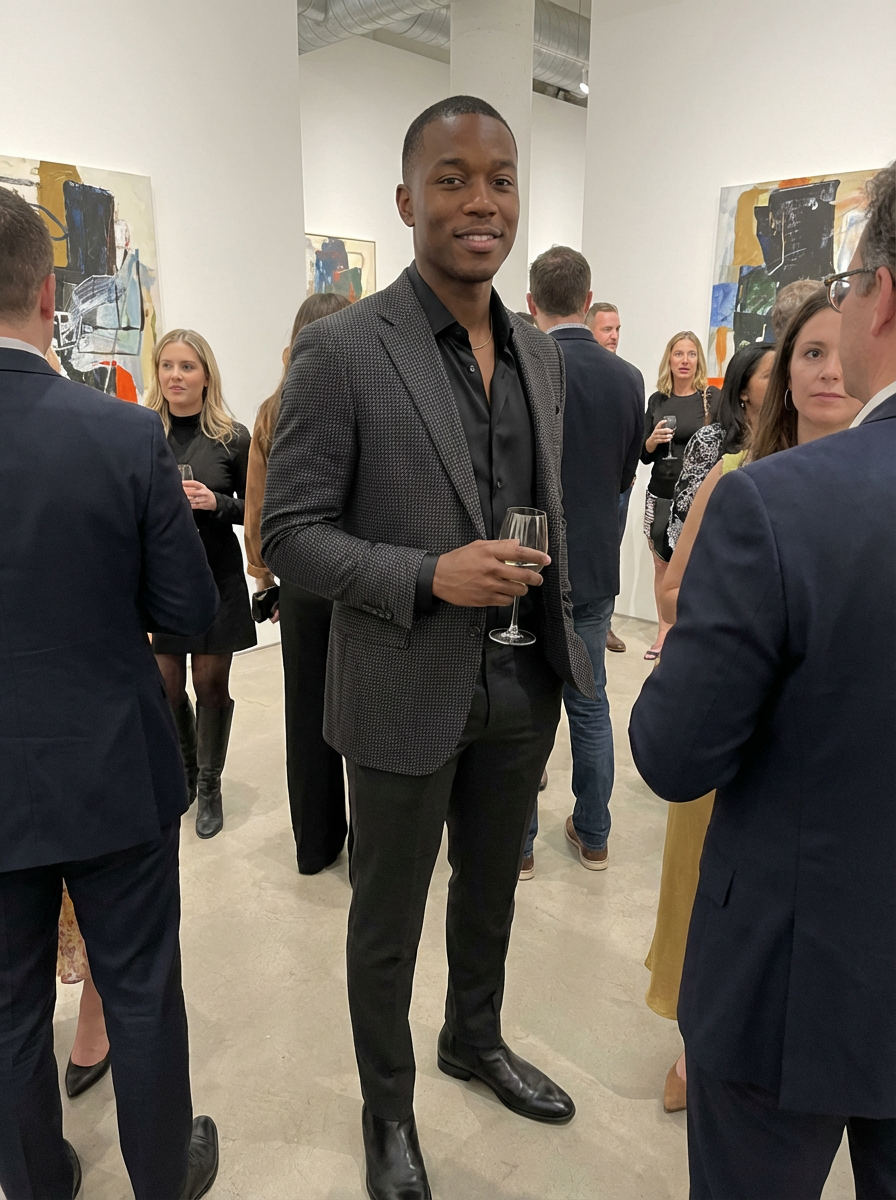 model at art gallery opening, sophisticated creative vibe, fashionable unique outfit