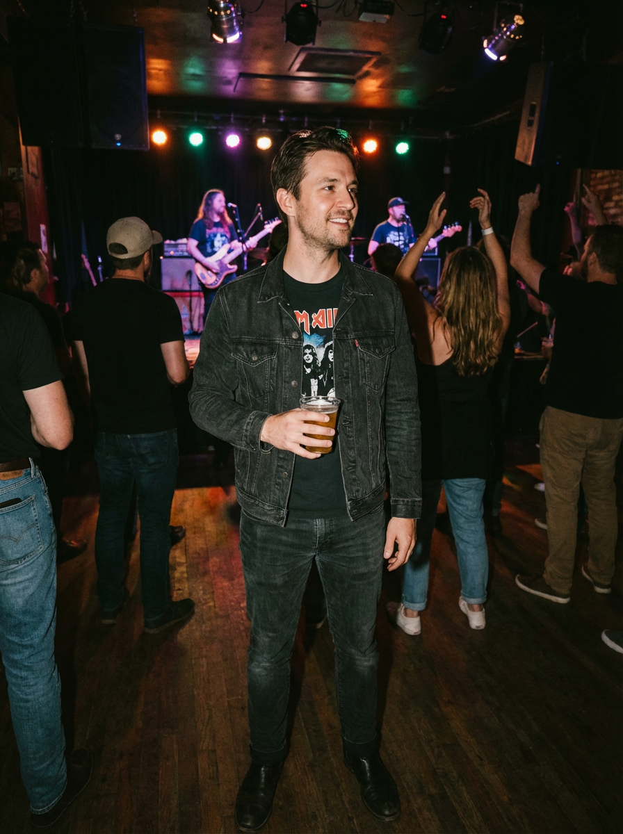 model at live music venue, music lover aesthetic, casual cool outfit, authentic atmosphere