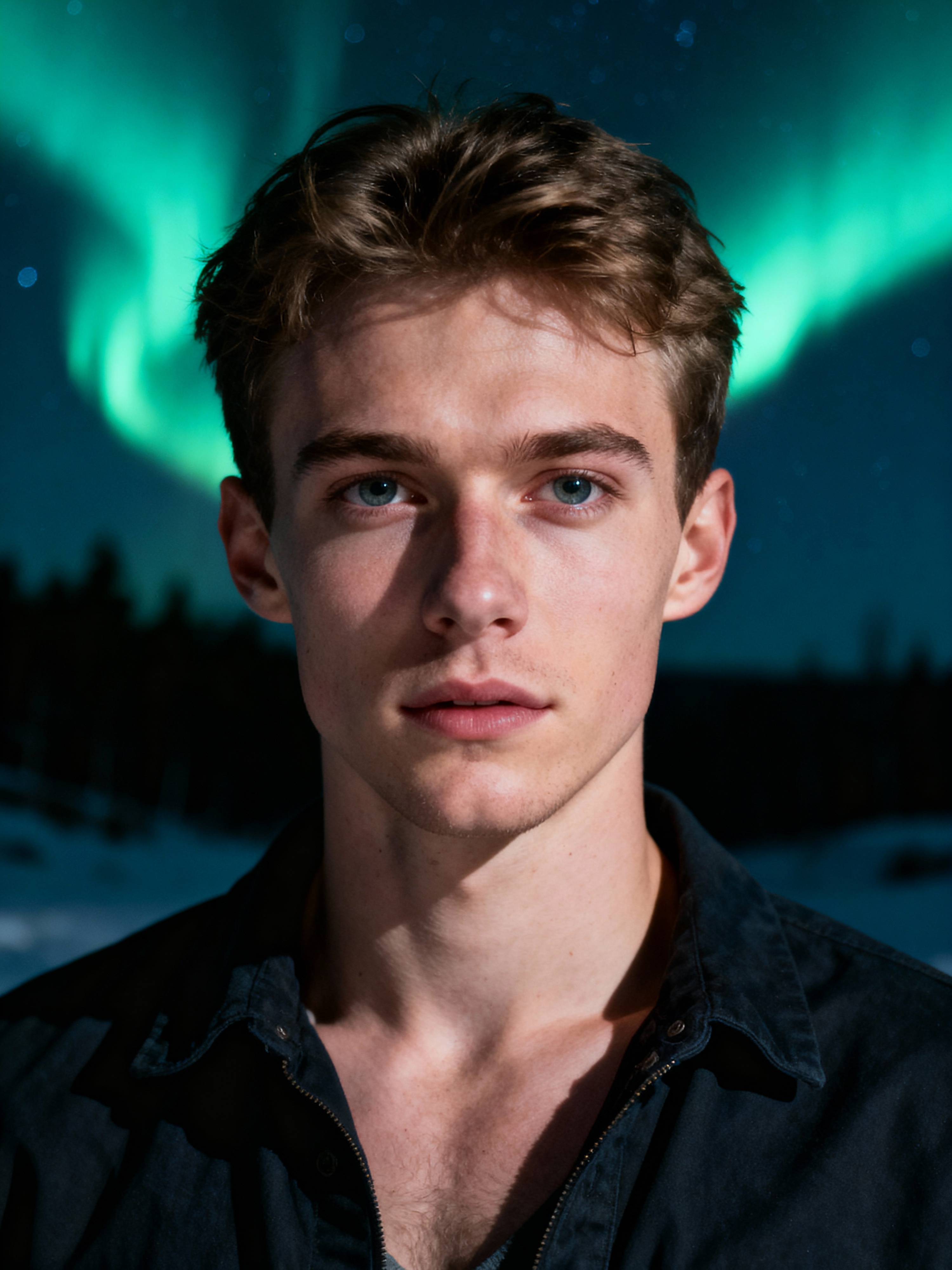 model at night at the Northern Lights Aurora Borealis
