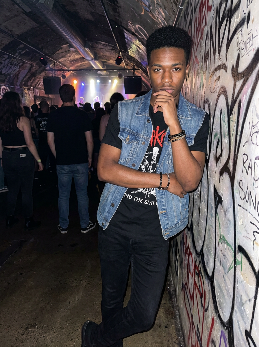 model at underground music venue, alternative scene aesthetic, edgy cool style
