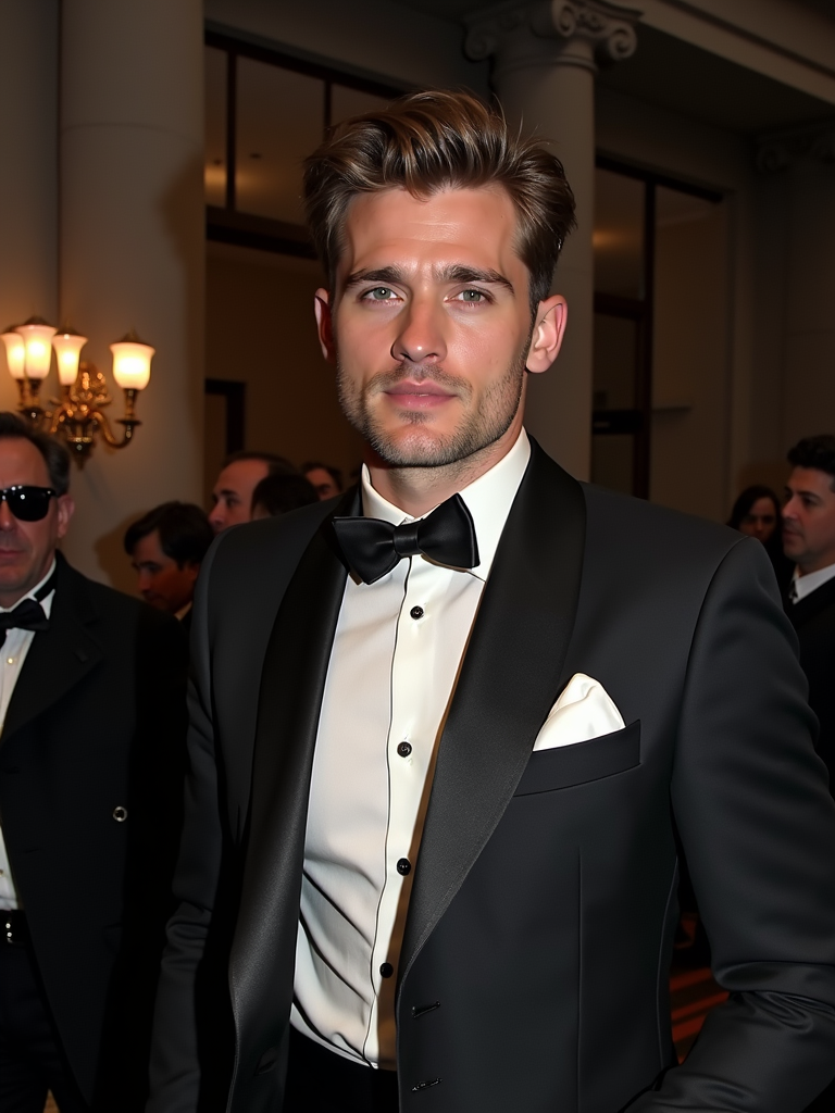 model departing the Met Gala in a luxury vehicle, wearing a refined evening ensemble with subtle luxury details, paparazzi and fans outside the Metropolitan Museum with event lighting visible