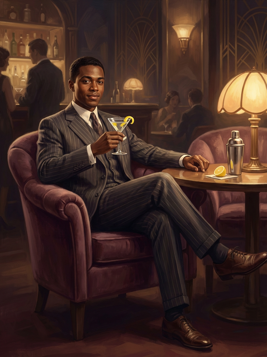 model, dimly lit upscale 1920s speakeasy, relaxed pose, fantasy, art deco, detailed painterly digital art style by coles phillips and alfred charles parker, πΈπ