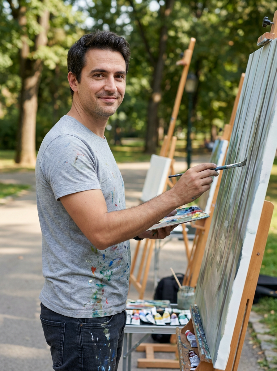 model doing creative activity, painting or music, artistic soul showing through