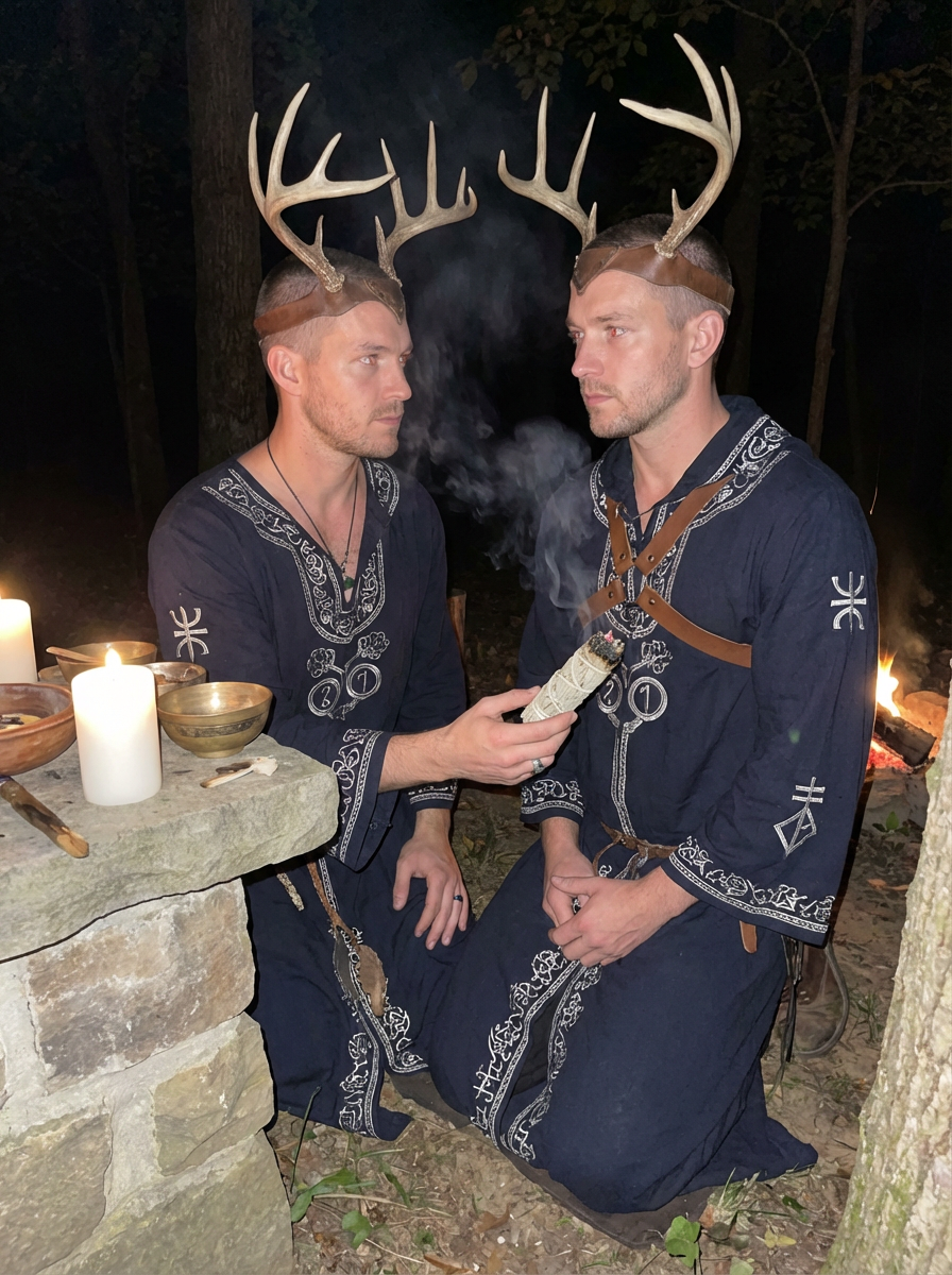 model engaged in a sacred ritual or ceremony, adorned with symbolic attire