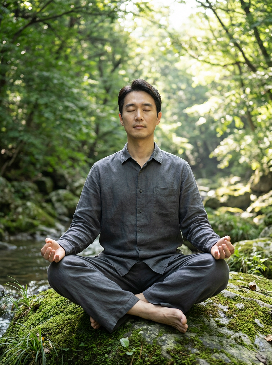 model engaging in a mindfulness practice