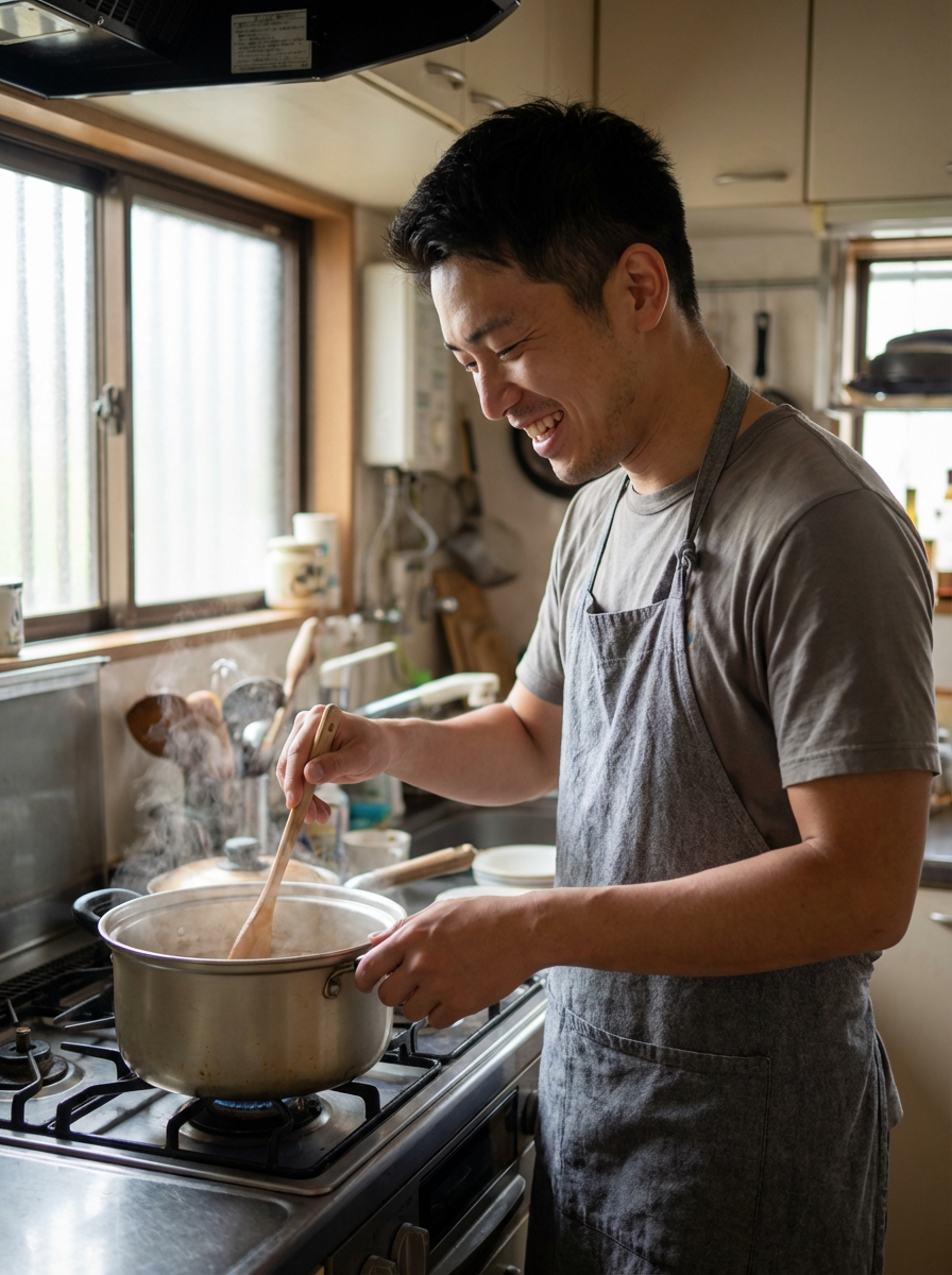 model engaging in hobby, playing guitar, cooking, or gaming, genuine candid moment