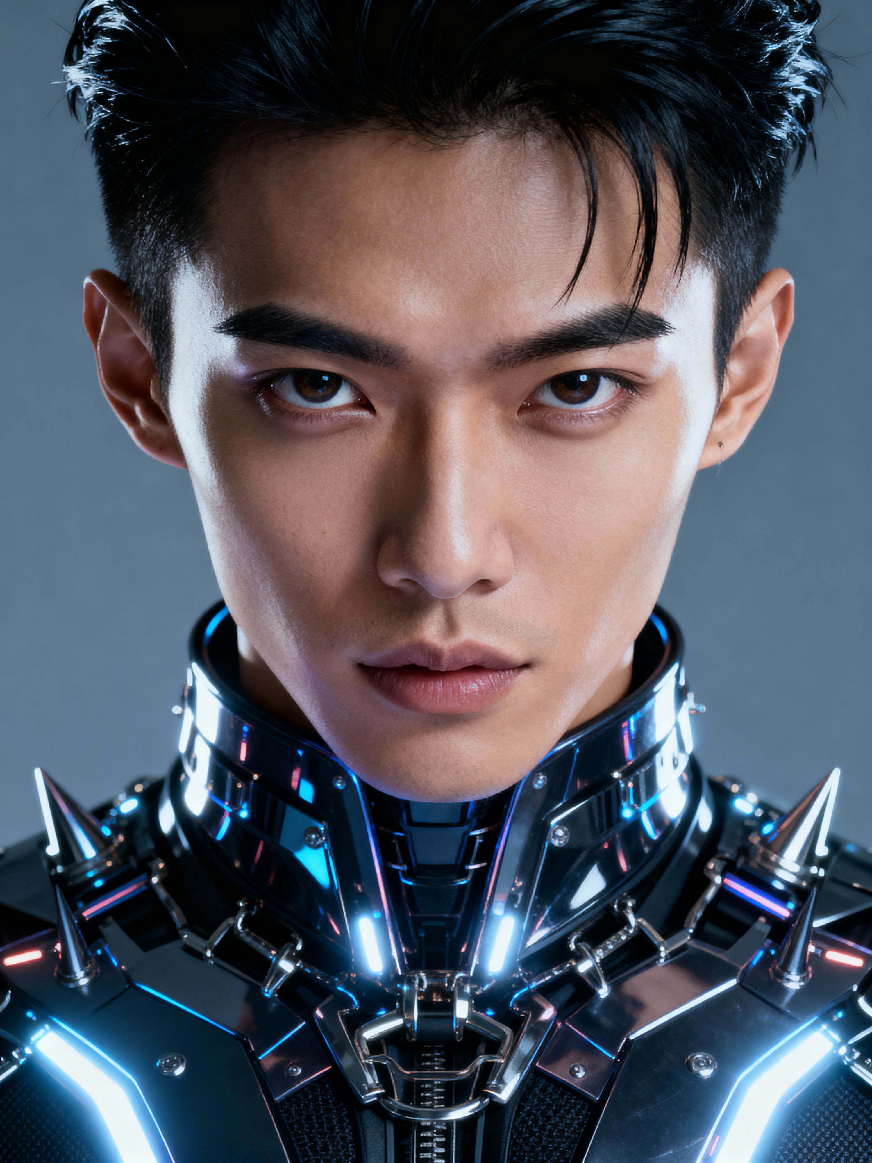 model face, gorgeous dominatrix shot, one face, futuristic fashion