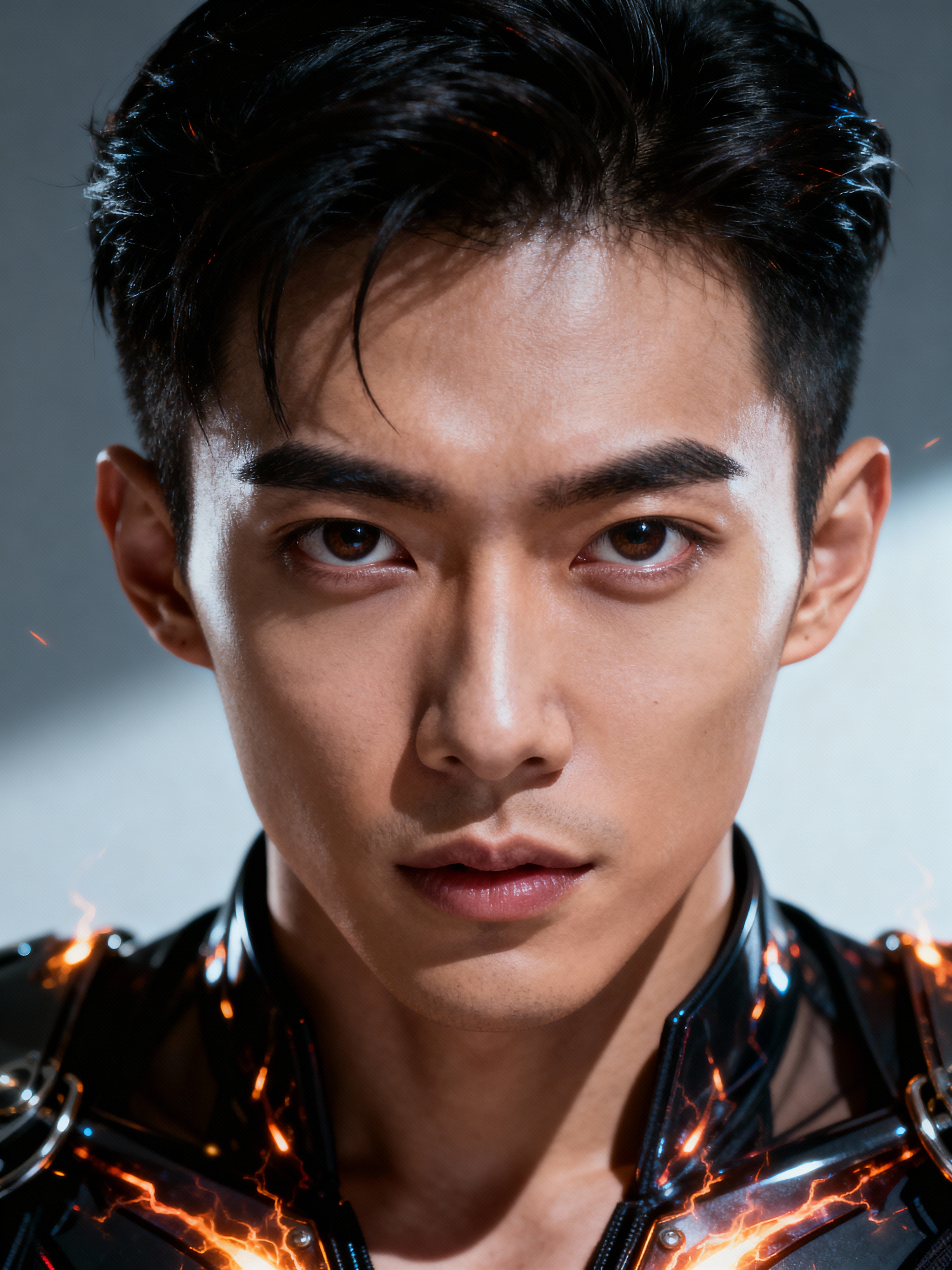 model face, gorgeous dominatrix shot, one face, futuristic fashion