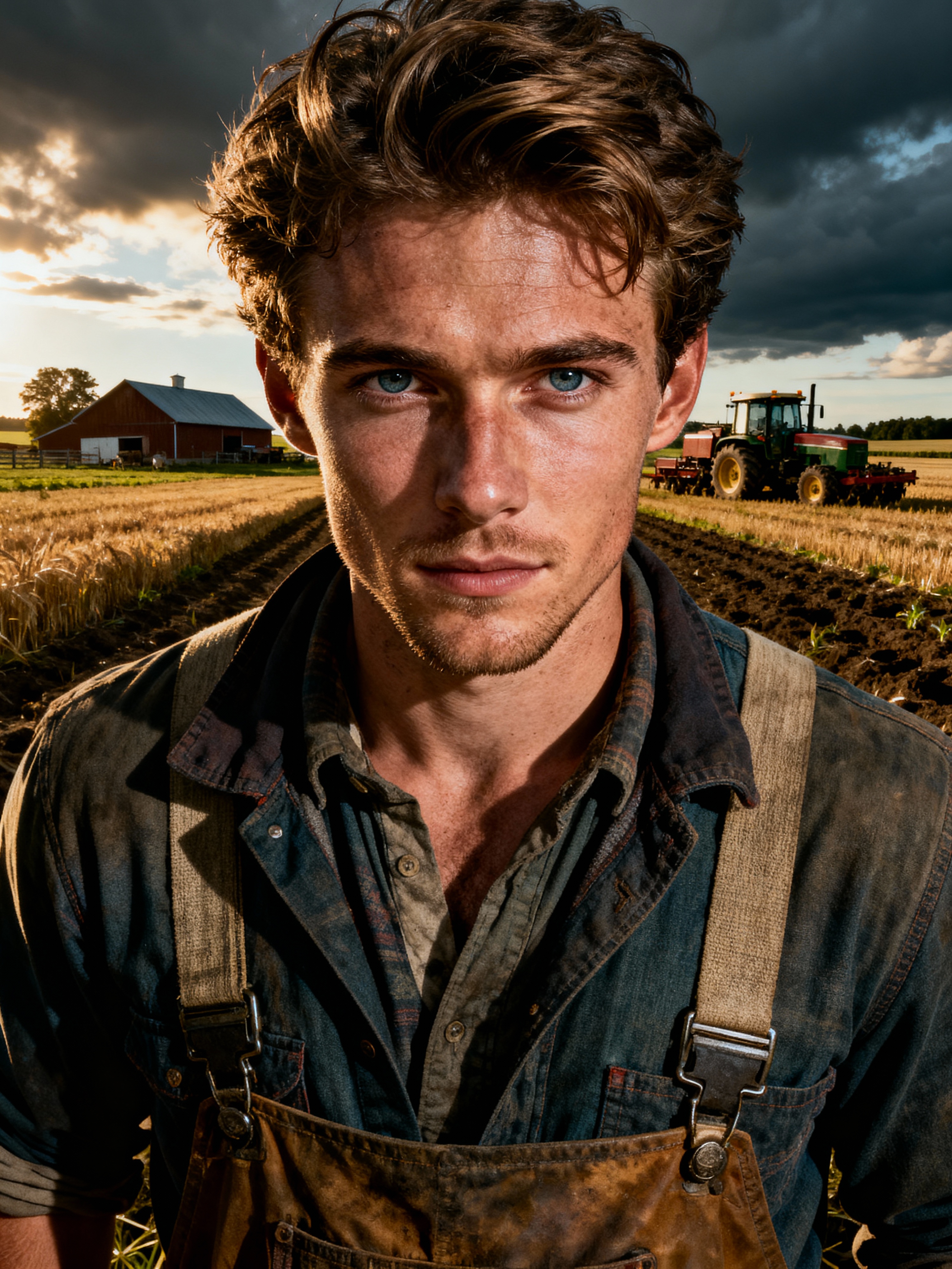 model farmer with farm in background