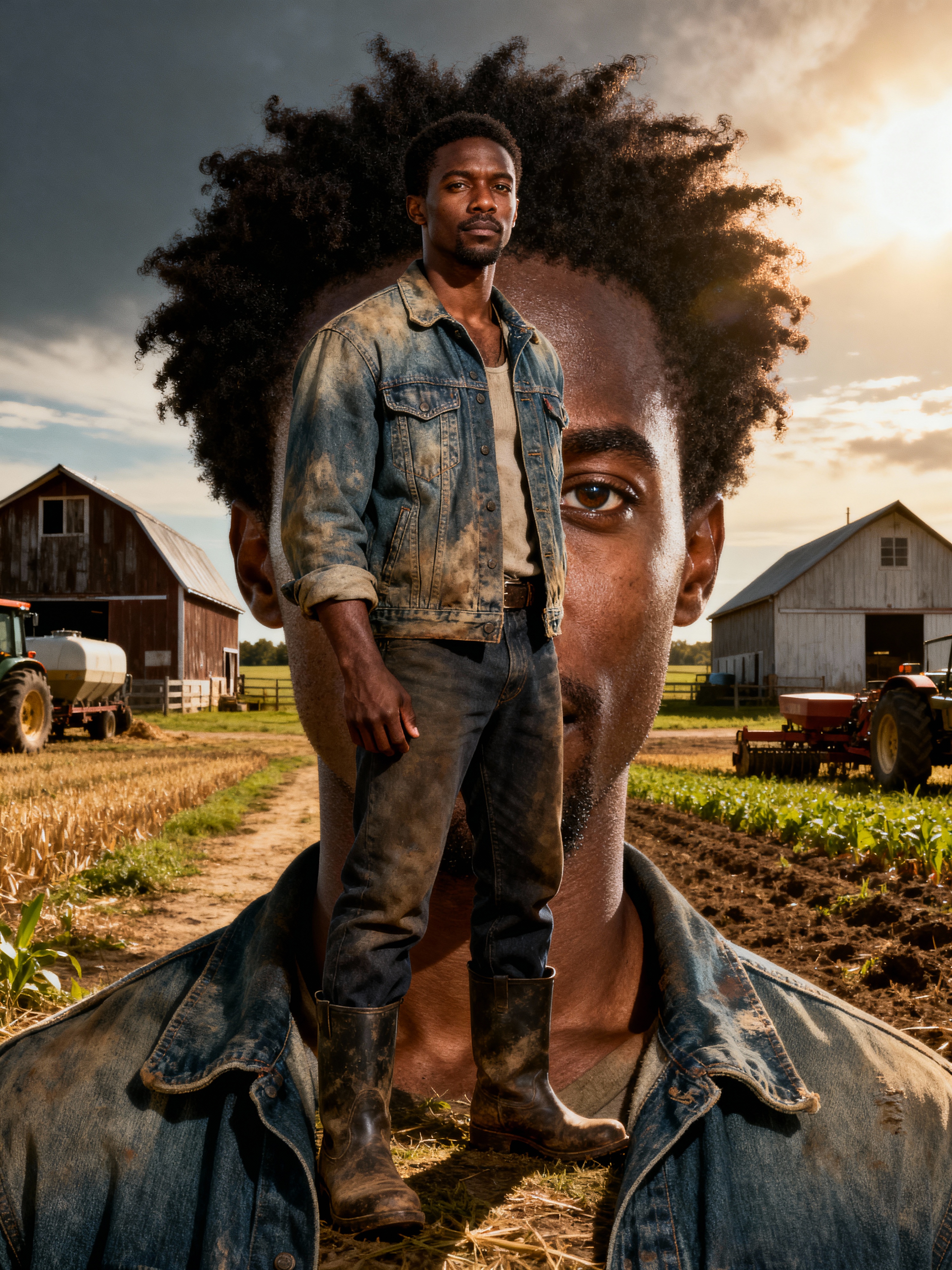 model farmer with farm in background