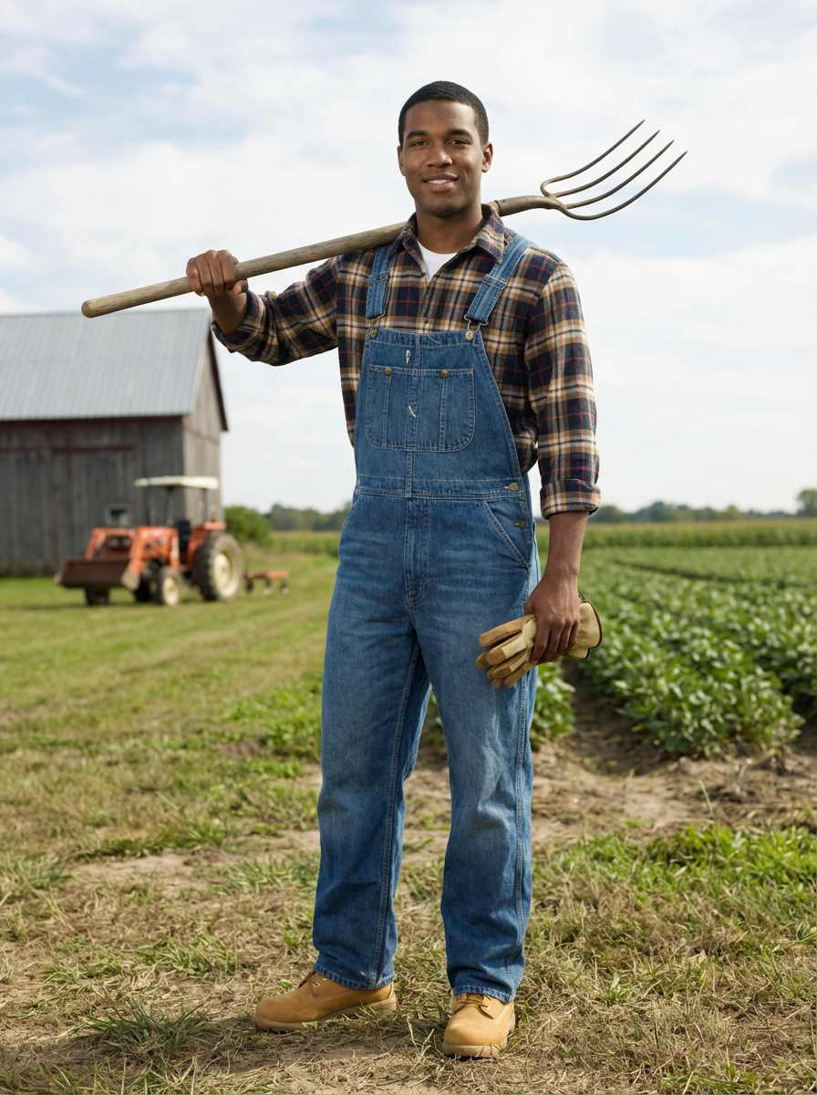 model farmer with farm in background