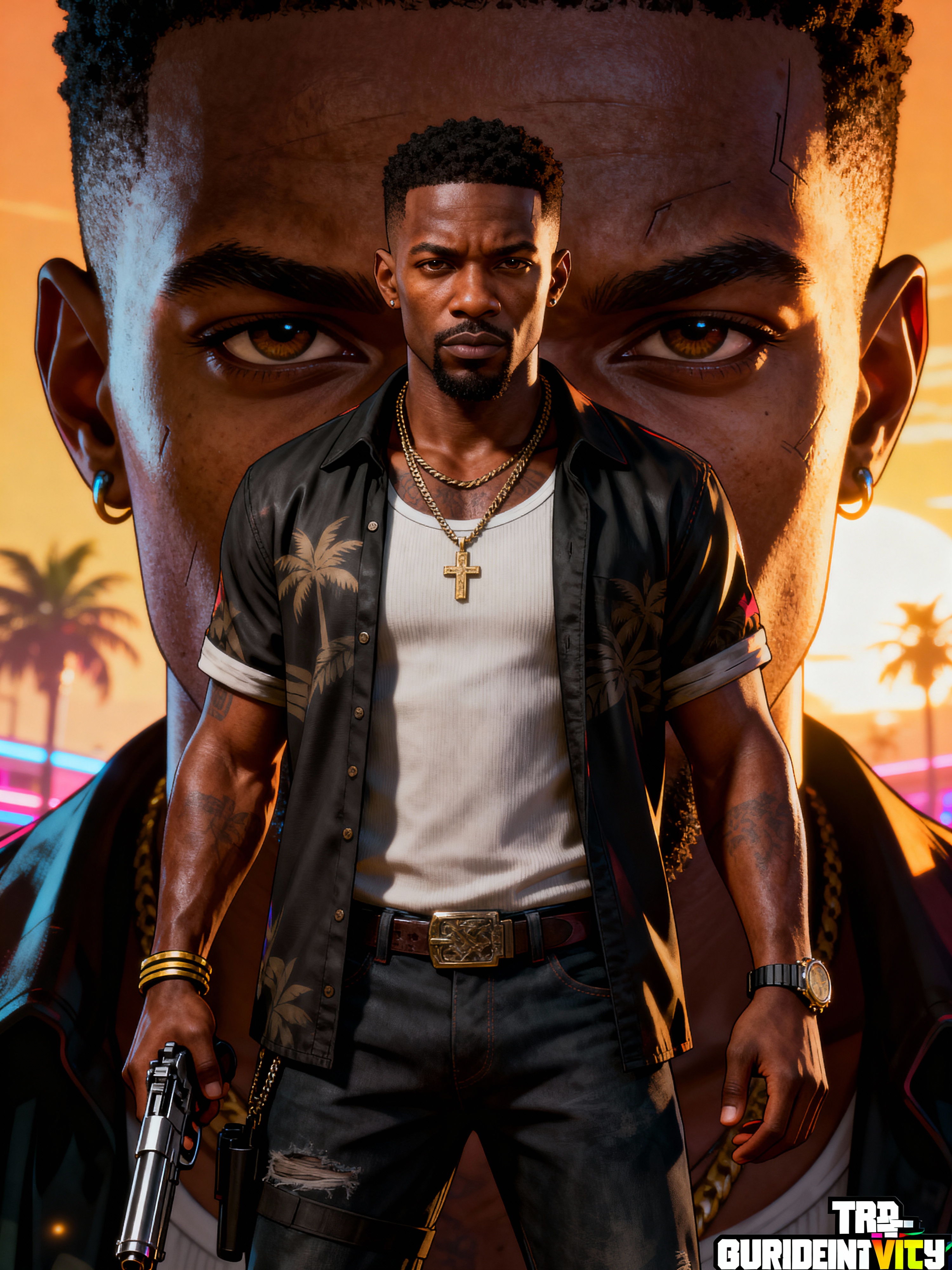 model, gta vice city cover art, borderlands style, celshading, trending on artstation, by rhads, andreas rocha, rossdraws, makoto shinkai, laurie greasley, lois van baarle, ilya kuvshinov and greg rutkowski