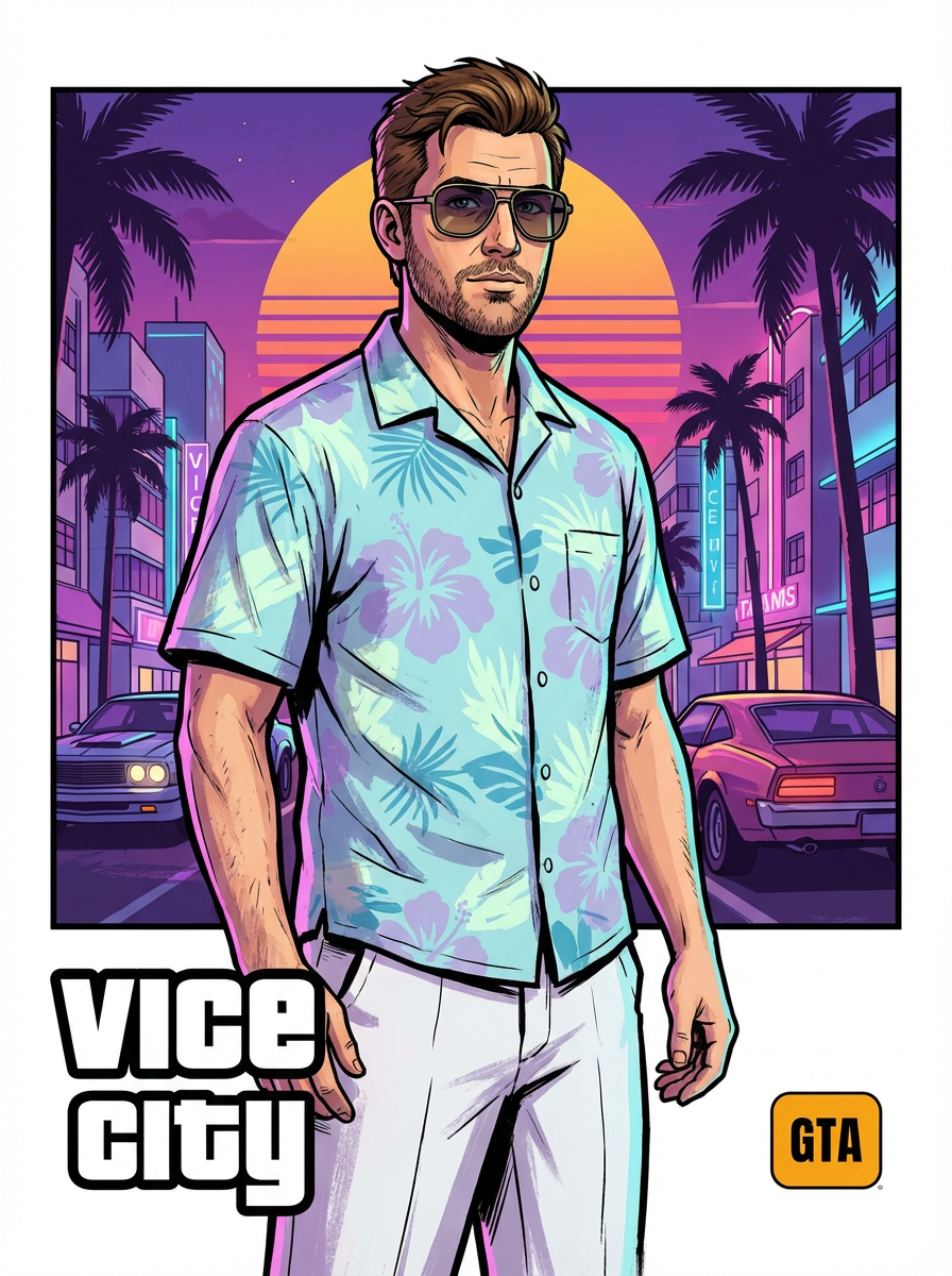 model, gta vice city cover art, borderlands style, celshading, trending on artstation, by rhads, andreas rocha, rossdraws, makoto shinkai, laurie greasley, lois van baarle, ilya kuvshinov and greg rutkowski