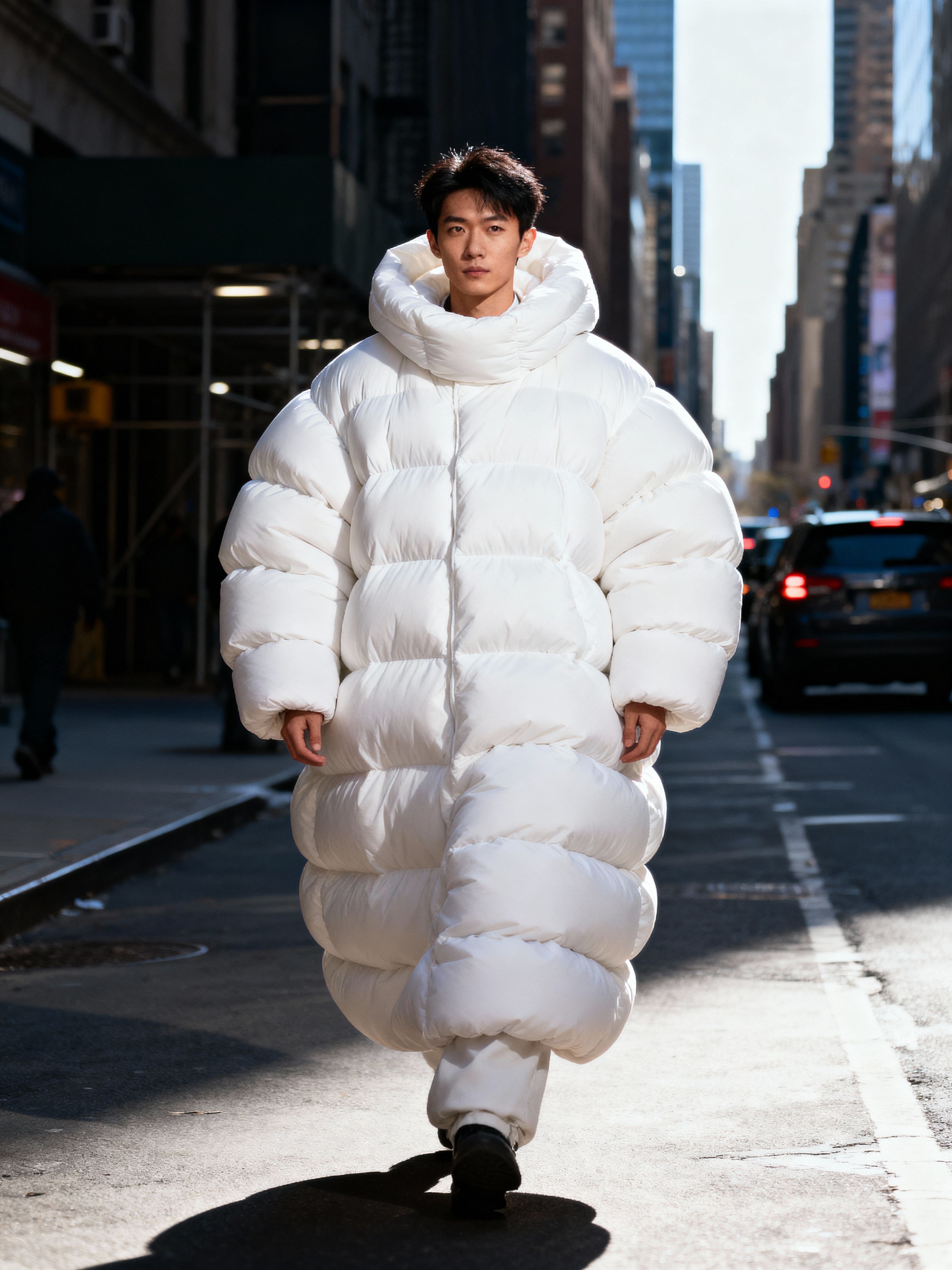 Related photosside view of woman in a super big round white puffer closed coat with an exaggerated, voluminous design with oversized hood and thick, many quilted sections that contribute to its inflated appearance. the coat is closed and inflated. woman is walking outside in New York City street.woman in a super big round white puffer closed coat with an exaggerated, voluminous design with oversized hood and thick, many quilted sections that contribute to its inflated appearance. the coat is closed and inflated. woman is walking outside in New York City street.side view of man in a super big round white puffer closed coat with an exaggerated, voluminous design with oversized hood and thick, many quilted sections that contribute to its inflated appearance. the coat is closed and inflated. man is walking outside in New York City street.gothic woman, bound by chains and barbed wire in a dungeon, very tight corset, high heelsclose-up of woman showcasing an Korean-style manga makeup look on woman, featuring oversized, dramatically long eyelashes that create a wide-eyed, whimsical appearance. The look is completed with bold, graphic eyeliner and a subtle blush to enhance the youthful and playful vibe. set against a soft, pastel backgroundsharp and trendy man in Moscow wearing a faux fur coat, Kremlin in the background