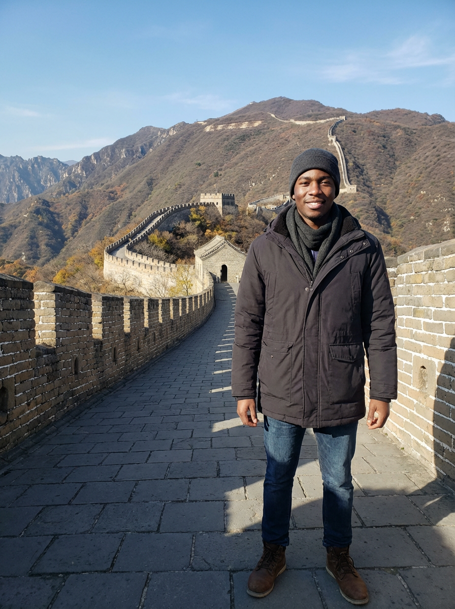model in Beijing with the Great Wall in the background