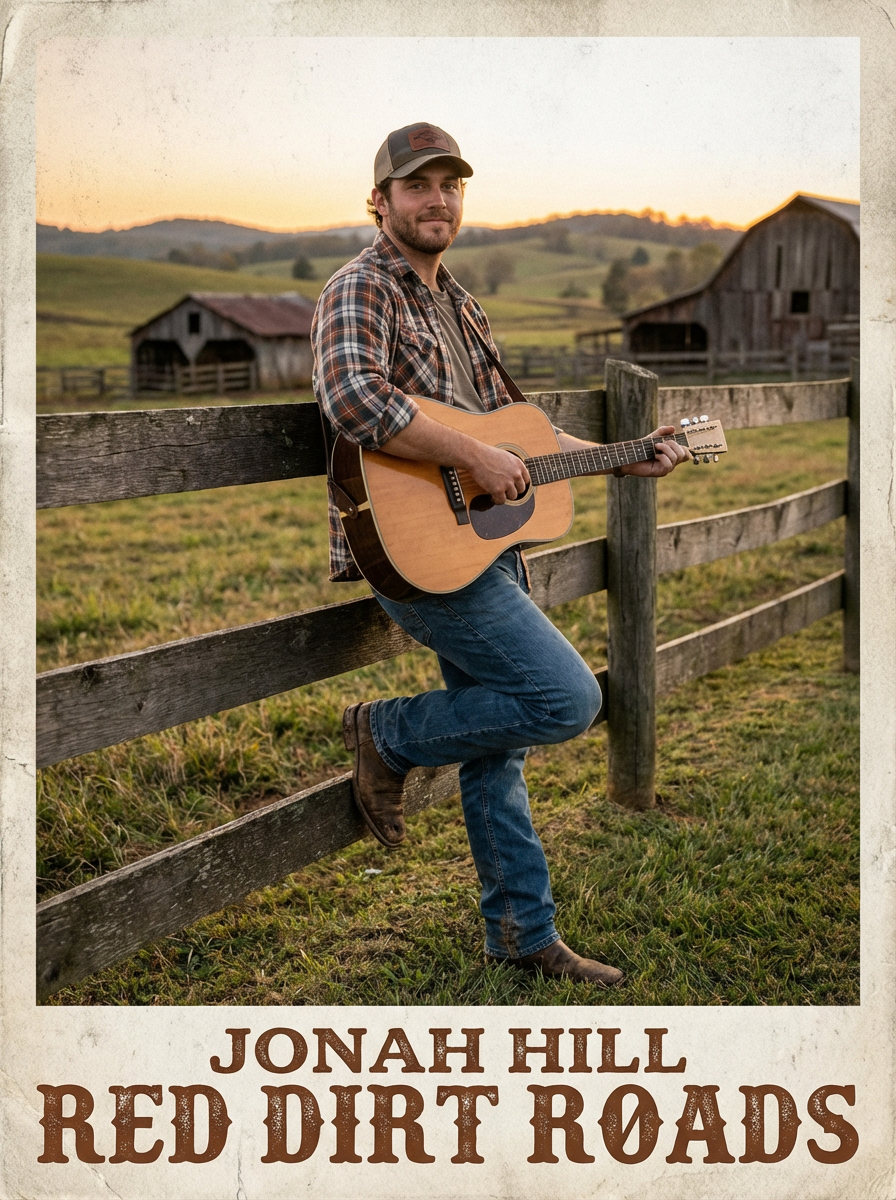 model in country album cover setting, authentic rural backdrop, genuine expression, storytelling mood