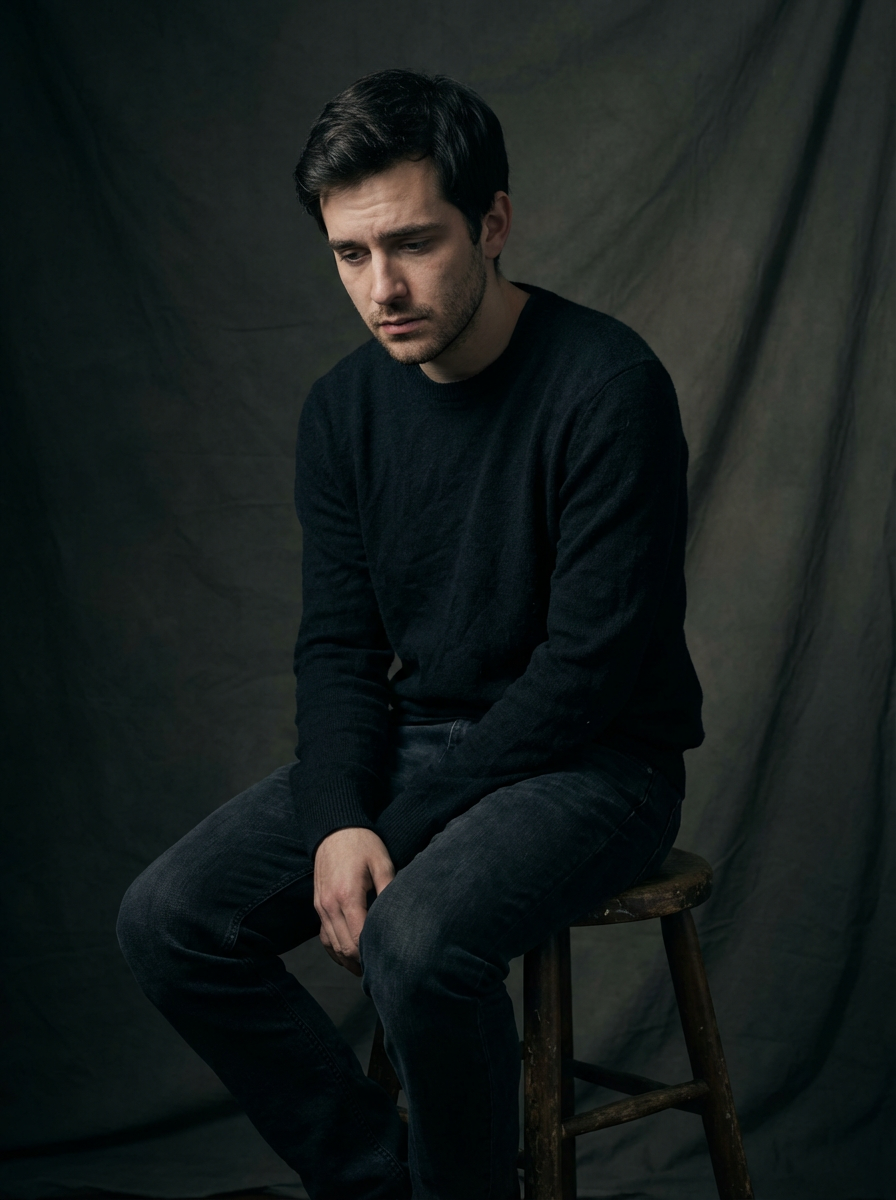 model in intimate artistic portrait, soft moody lighting, authentic vulnerable expression