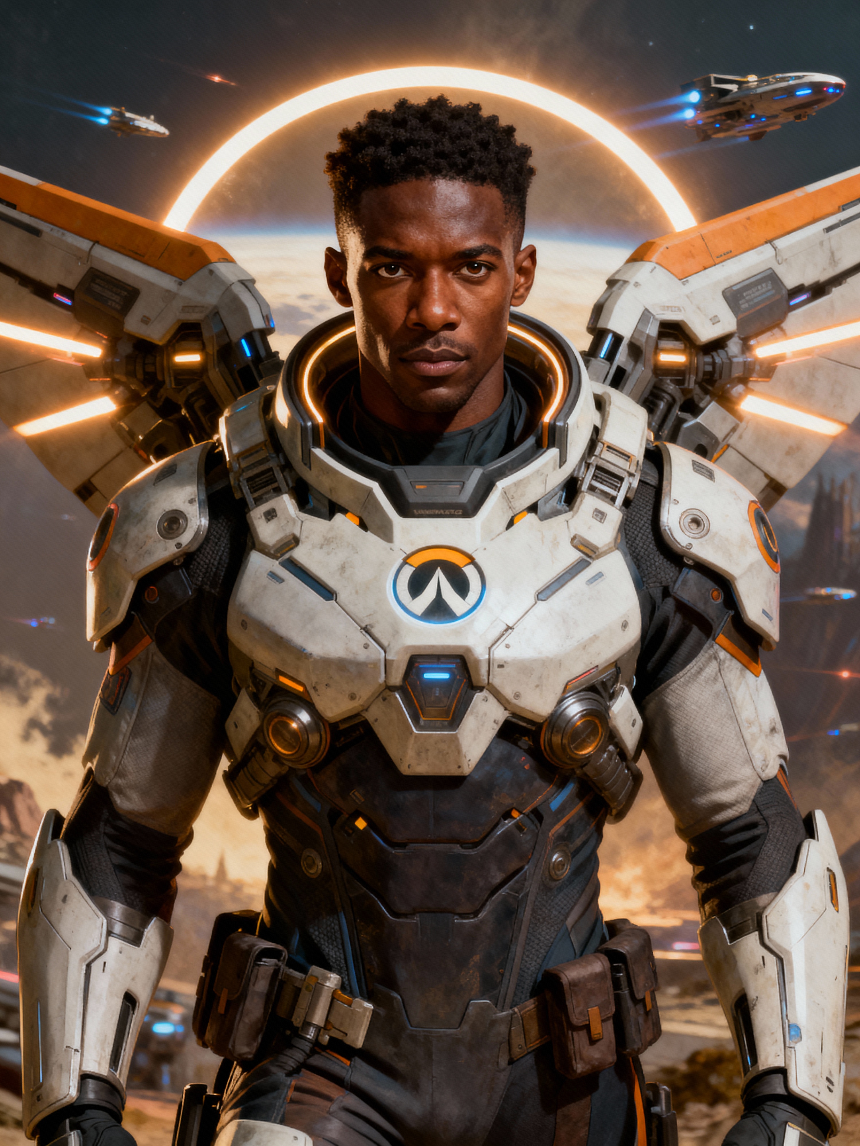 model in Overwatch, character shot, shot, concept art, intricate details, highly detailed, vintage sci - fi poster, retro future, in the style of chris foss, rodger dean, moebius, michael whelan, and gustave dore