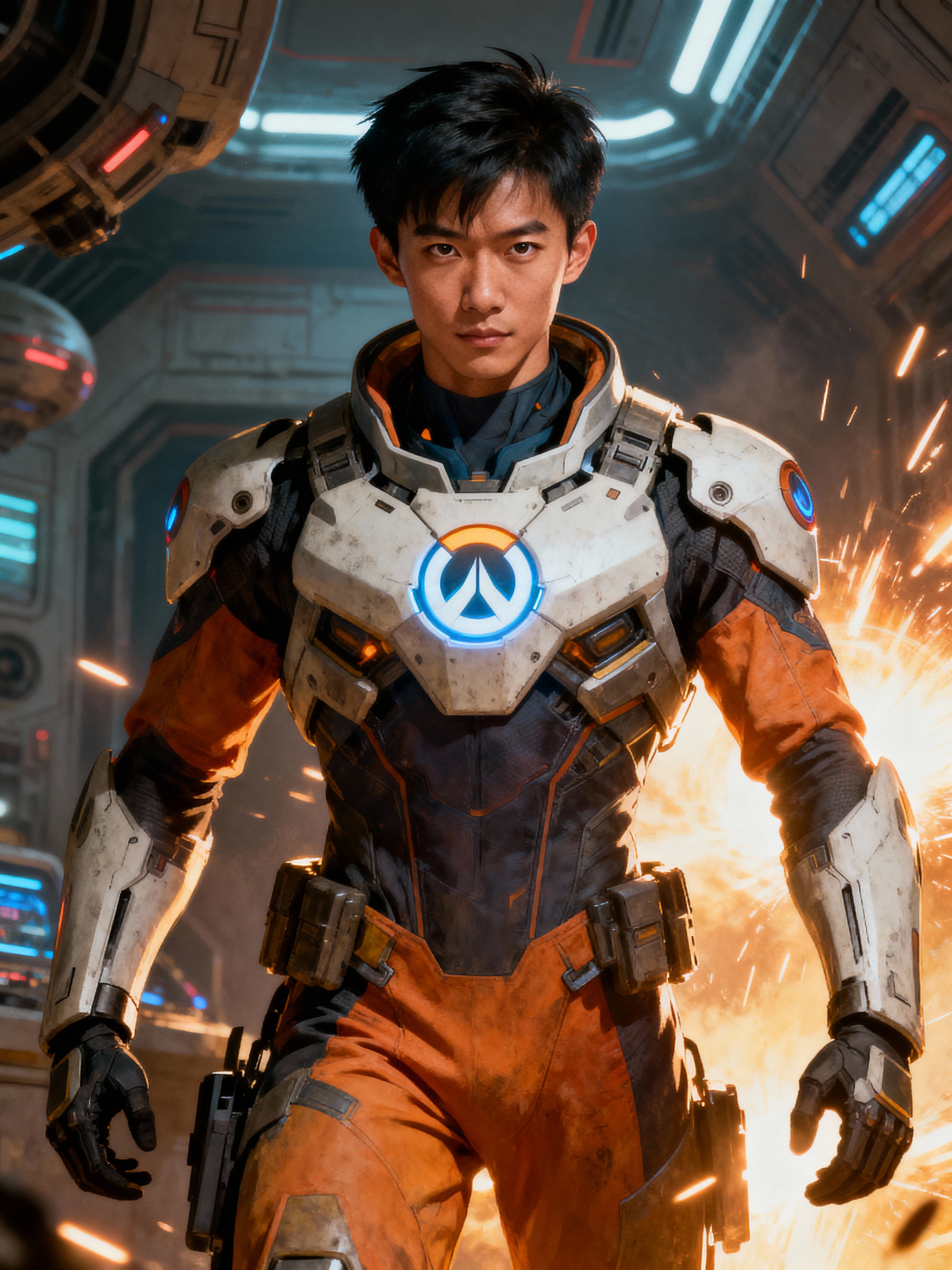 model in Overwatch, character shot, shot, concept art, intricate details, highly detailed, vintage sci - fi poster, retro future, in the style of chris foss, rodger dean, moebius, michael whelan, and gustave dore