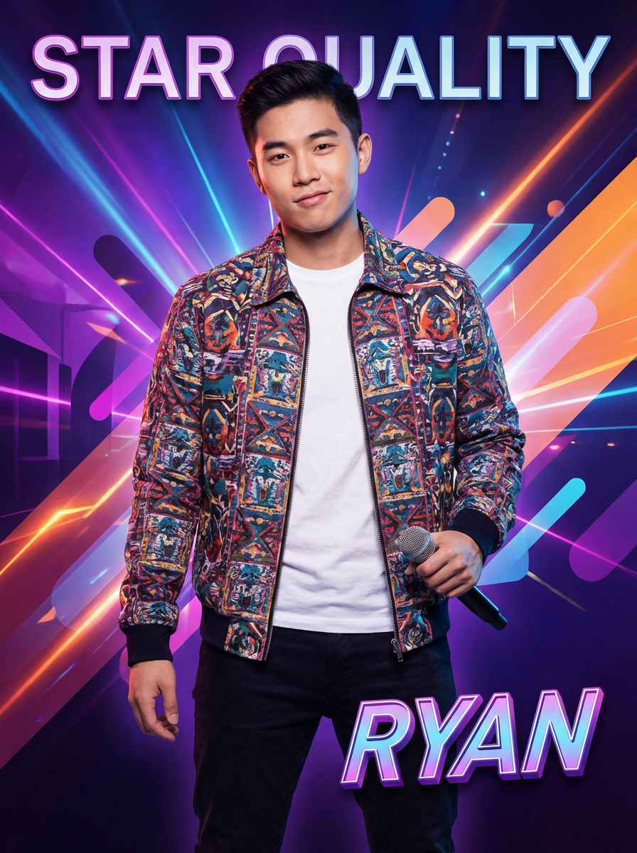 model in pop album cover style, colorful vibrant, confident star quality, professional photography