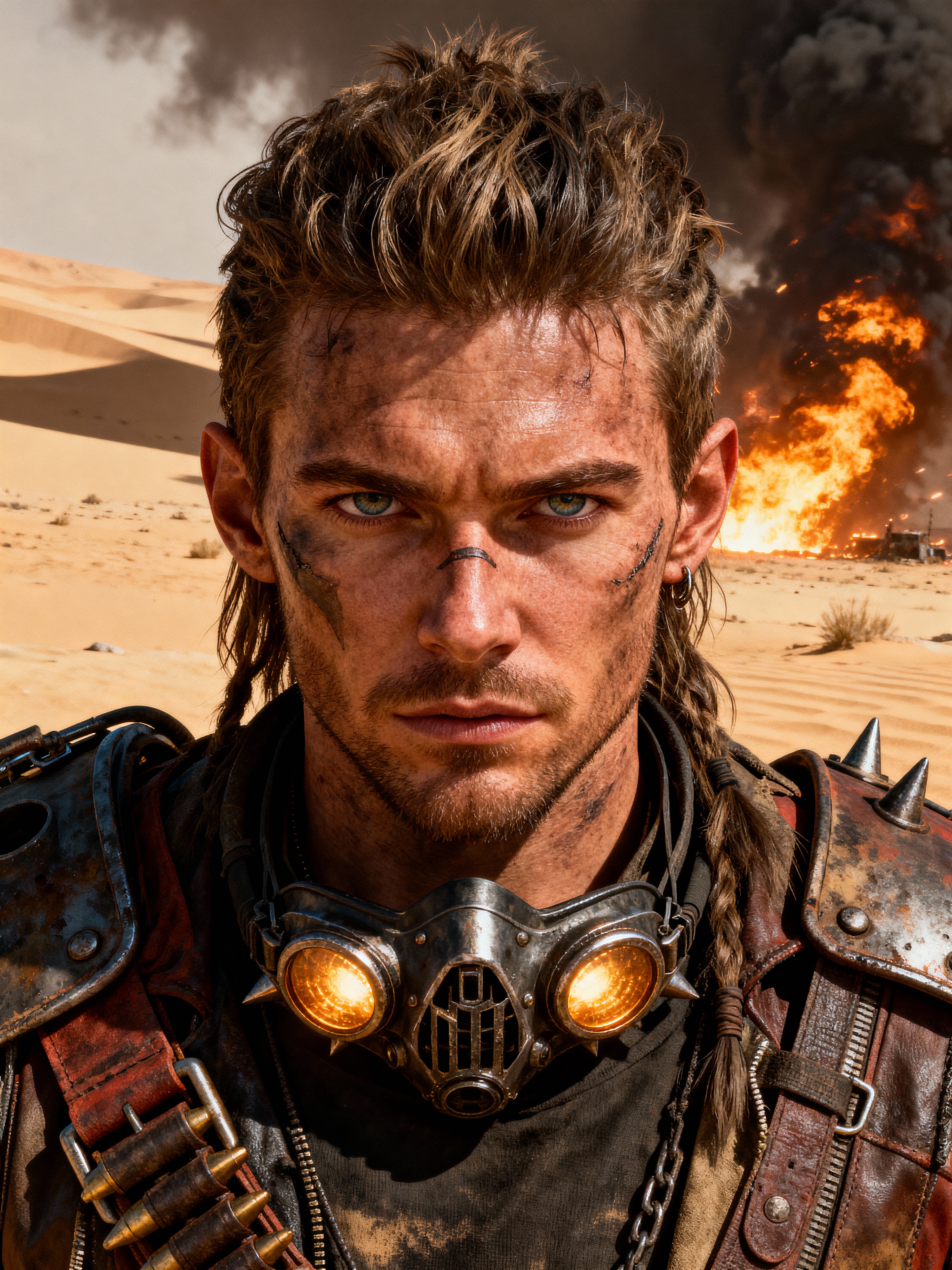 model in style of mad max warrior in desert _ unreal _ 5 _ daz. _ rpg _ shot _ extremely _ detailed _ artgerm _ greg _ rutkowski _ greg
