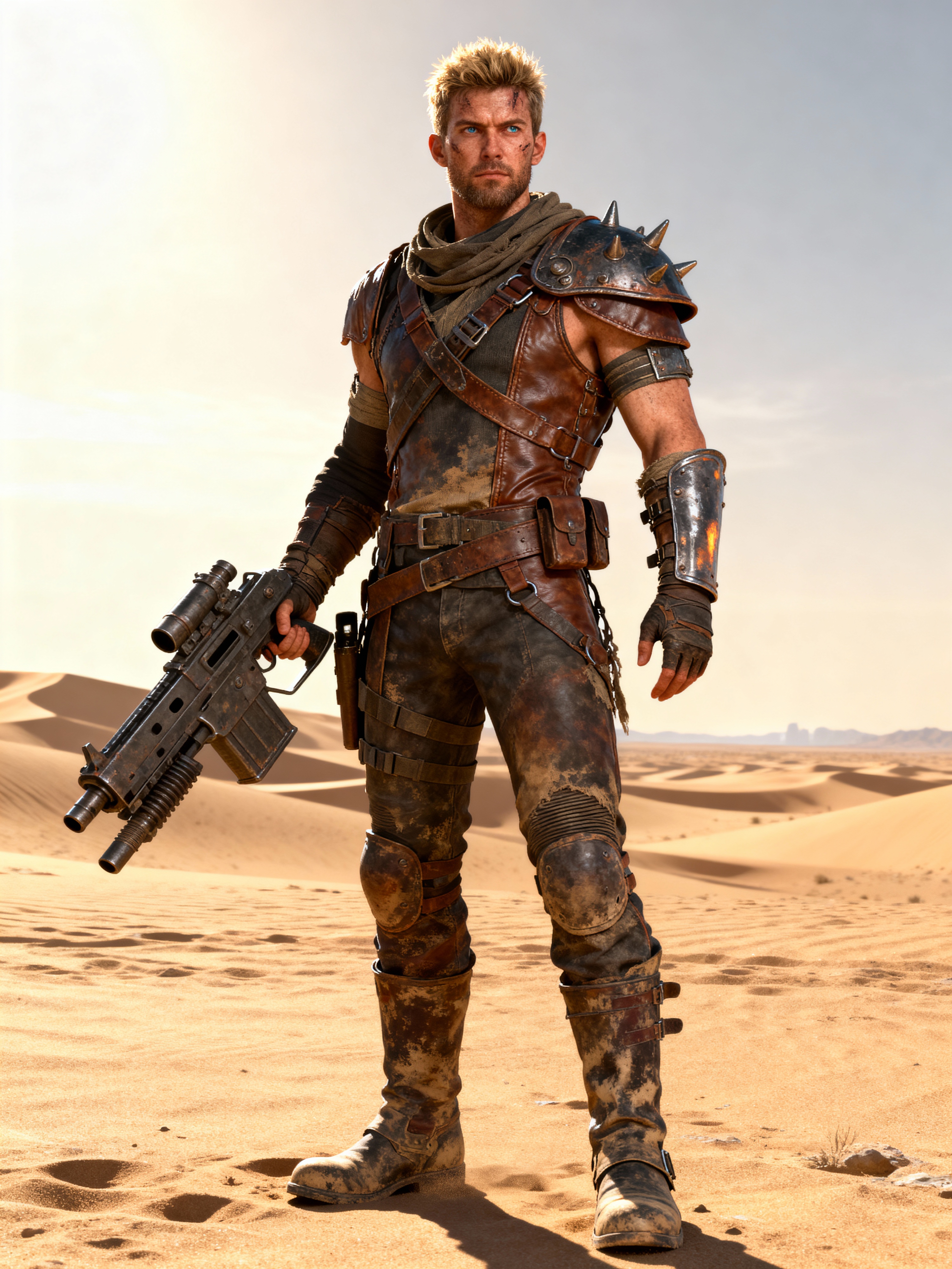 model in style of mad max warrior in desert _ unreal _ 5 _ daz. _ rpg _ shot _ extremely _ detailed _ artgerm _ greg _ rutkowski _ greg
