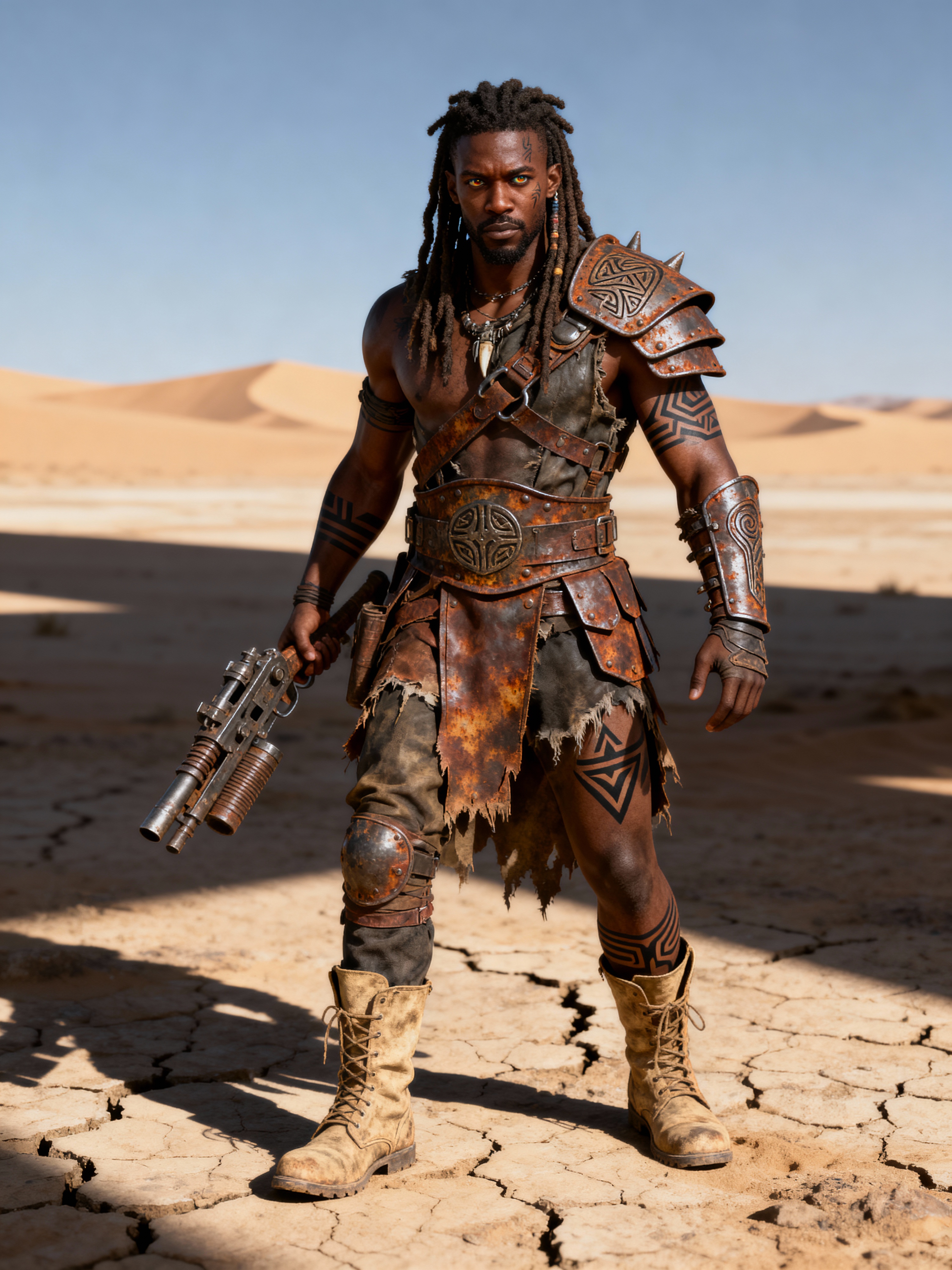 model in style of mad max warrior in desert _ unreal _ 5 _ daz. _ rpg _ shot _ extremely _ detailed _ artgerm _ greg _ rutkowski _ greg
