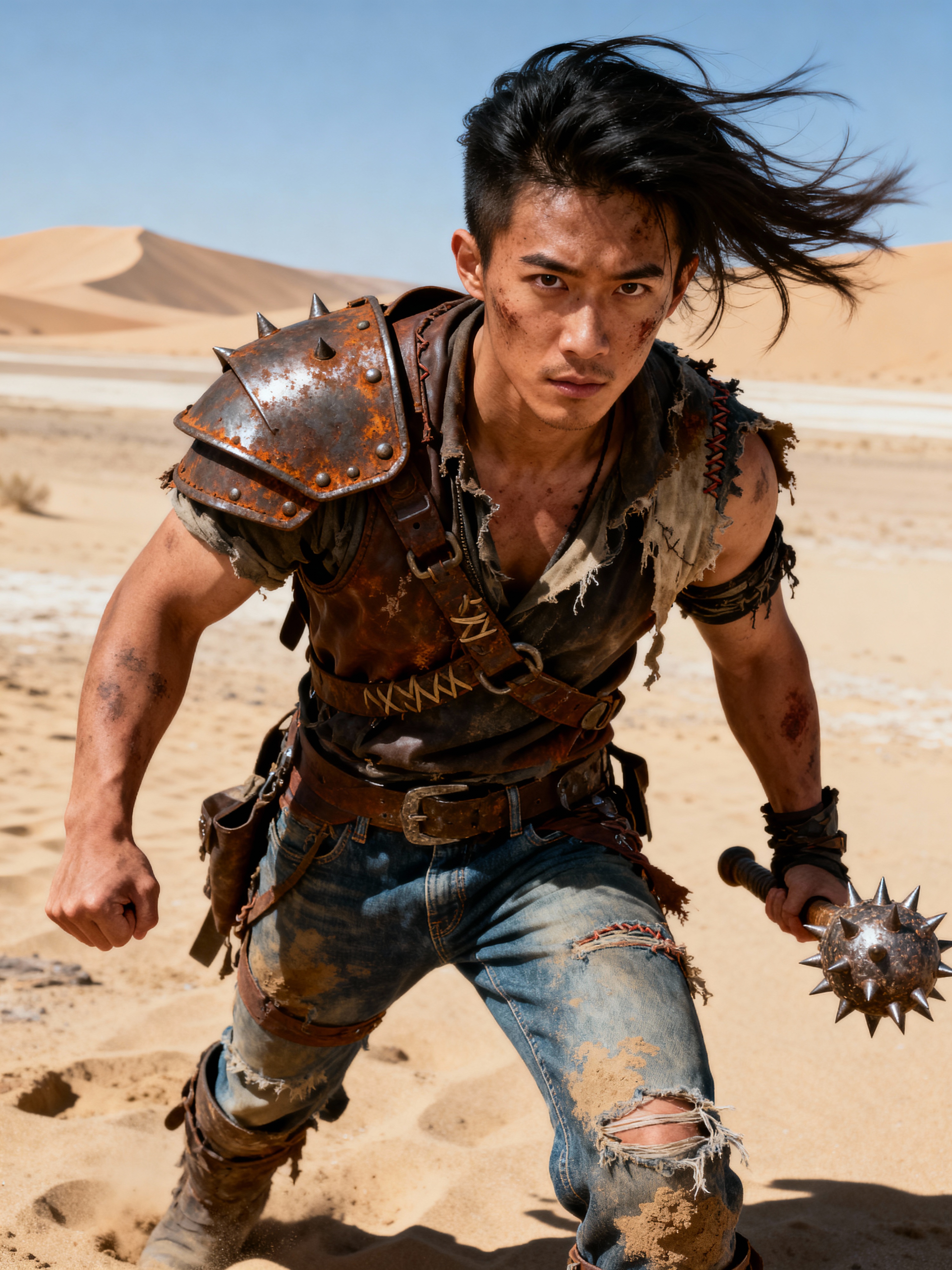 model in style of mad max warrior in desert _ unreal _ 5 _ daz. _ rpg _ shot _ extremely _ detailed _ artgerm _ greg _ rutkowski _ greg