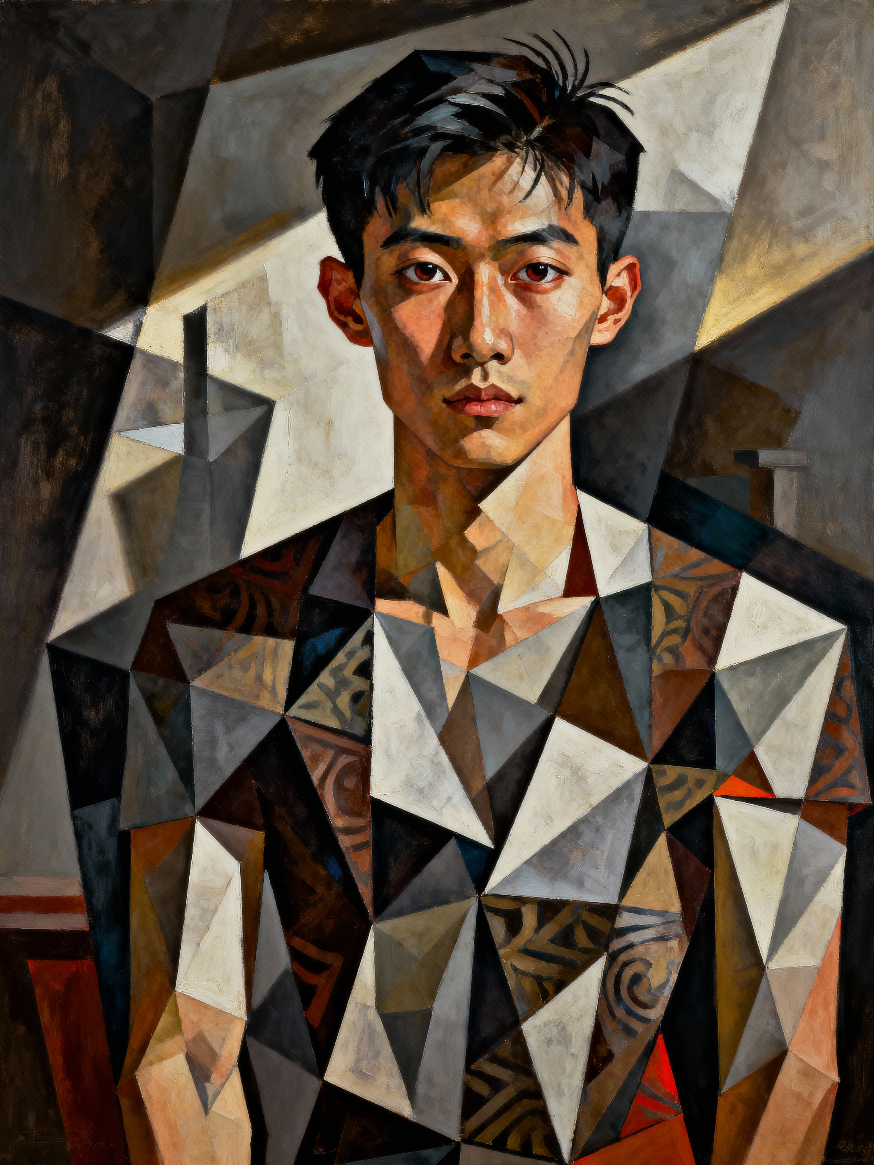 model in style of Picasso, oil on canvas. Cubism style painting. art by Pablo Picasso