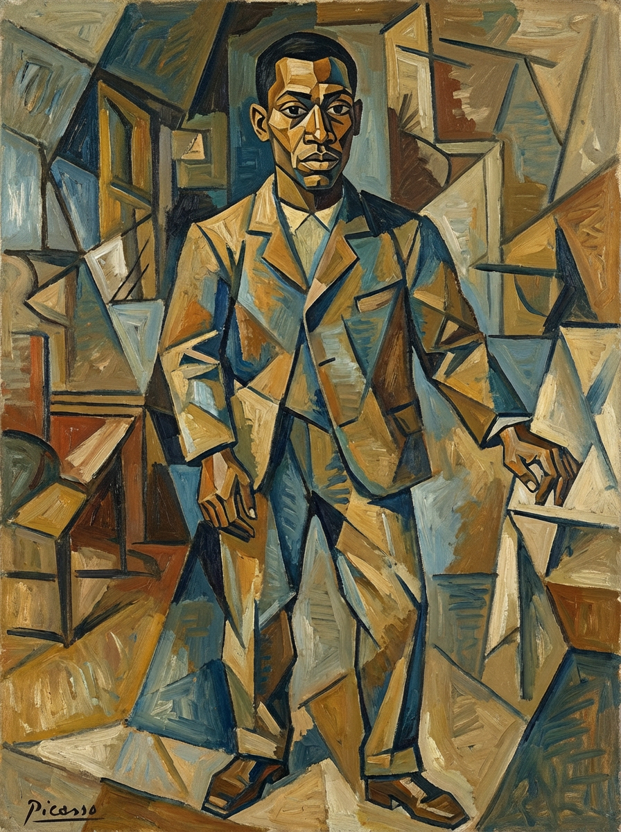 model in style of Picasso, oil on canvas. Cubism style painting. art by Pablo Picasso
