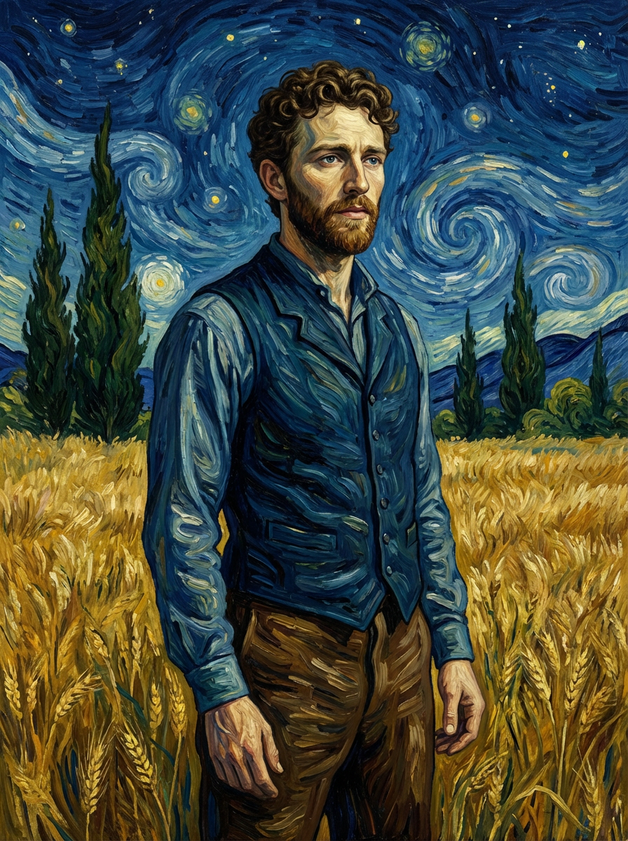 model in style of Van Gogh, elegant, intricate, digital painting, artstation, concept art, smooth, sharp focus, illustration, art by van gogh