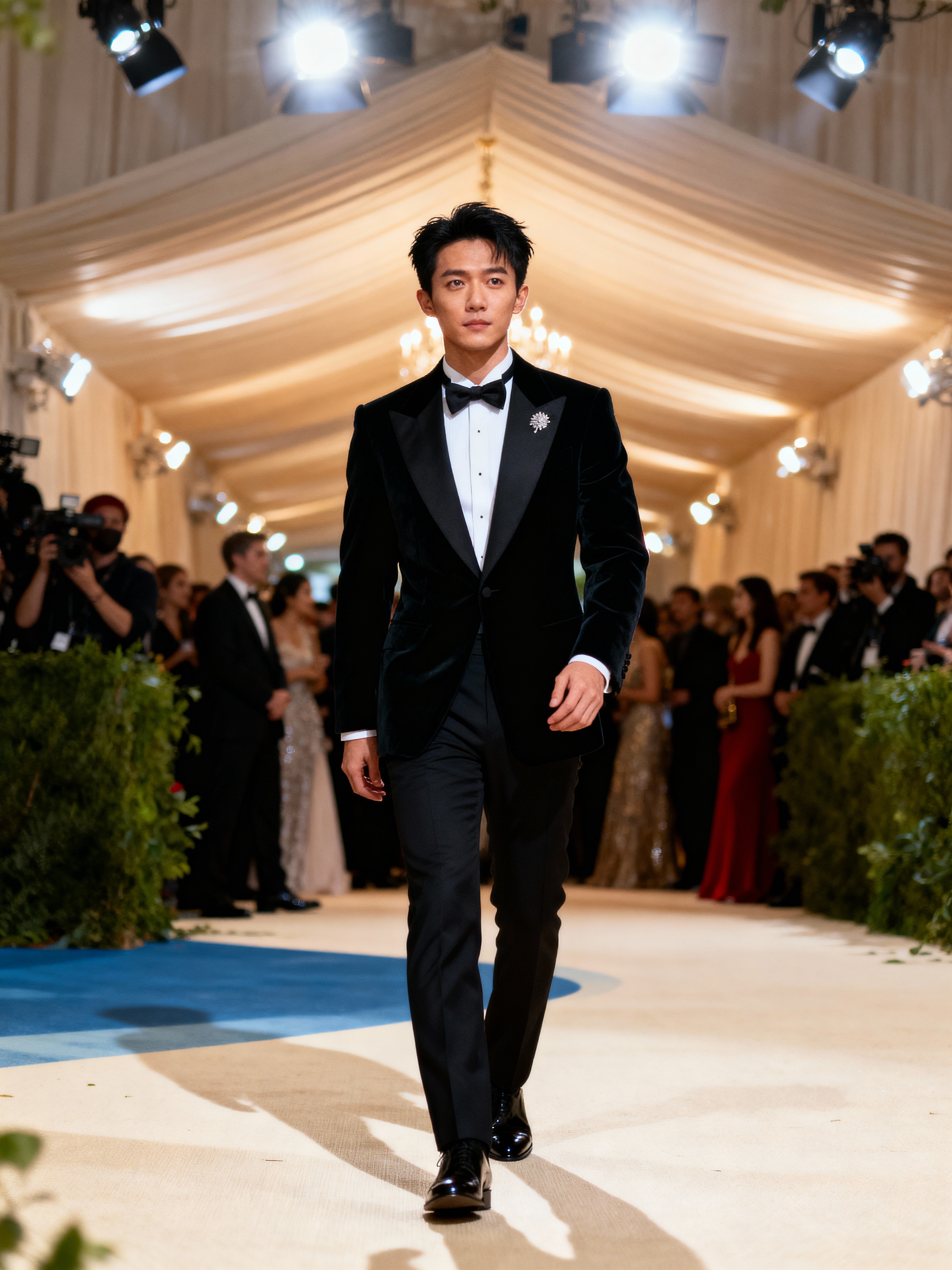 model in tuxedo at Met Gala