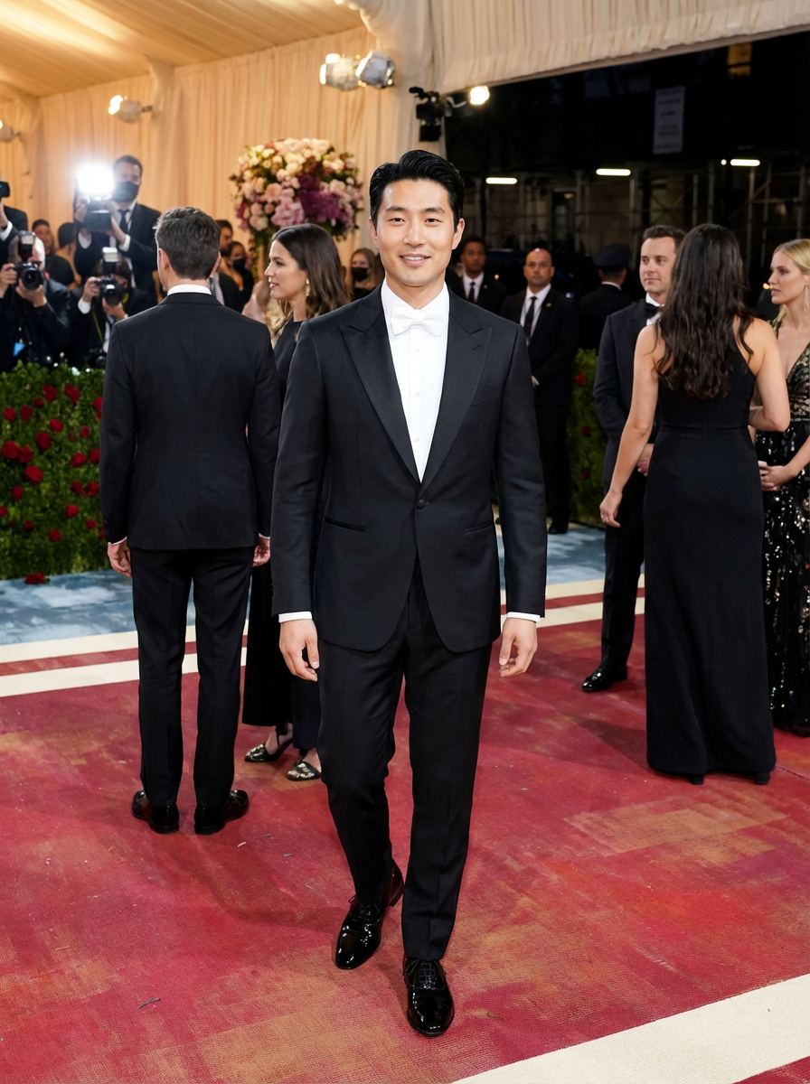 model in tuxedo at Met Gala