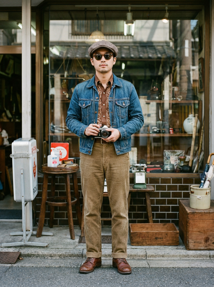 model in vintage or retro styled outfit, eclectic personal style, interesting location