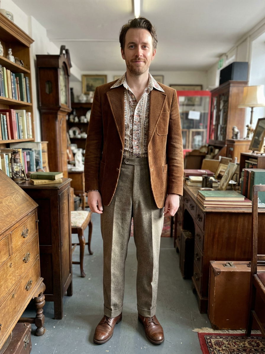model in vintage or retro styled outfit, eclectic personal style, interesting location