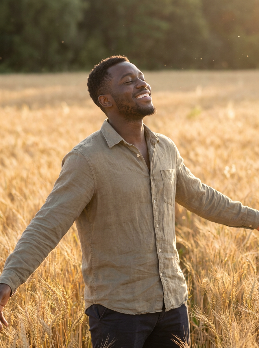 model outside in nature in forest or jungle or a field of wheat enjoying the natural world