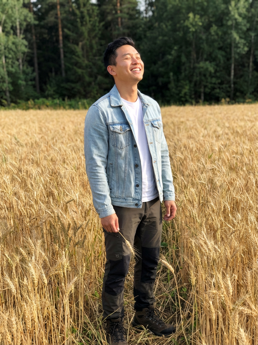 model outside in nature in forest or jungle or a field of wheat enjoying the natural world