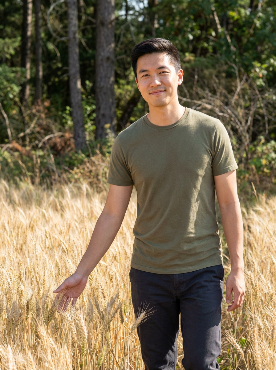 model outside in nature in forest or jungle or a field of wheat enjoying the natural world