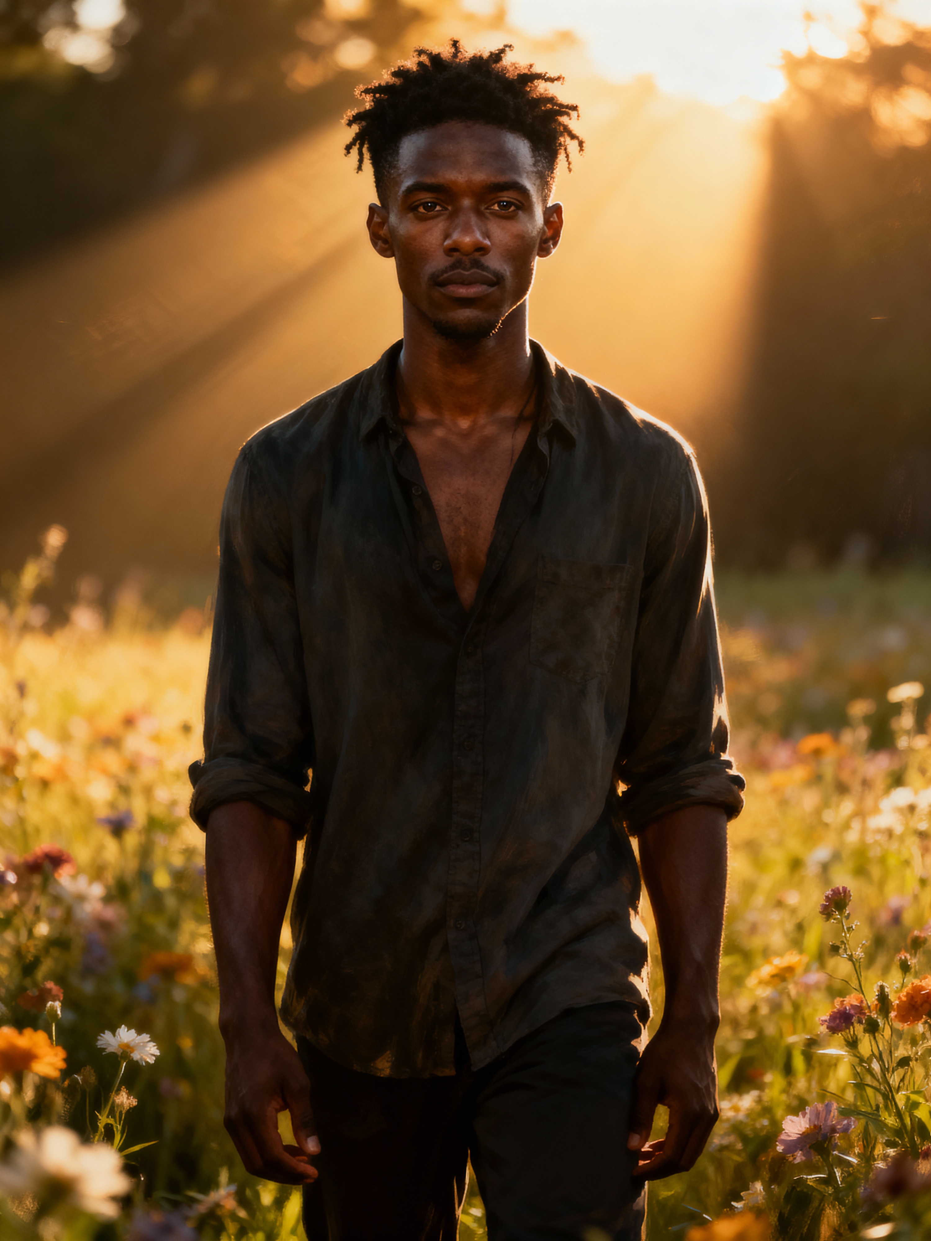 model | standing in field full of flowers | detailed gorgeous face! ! | full body! ! | god rays | intricate | elegant | realistic | hyperrealistic | cinematic | character design | concept art | illustration | digital art | digital painting | depth of field