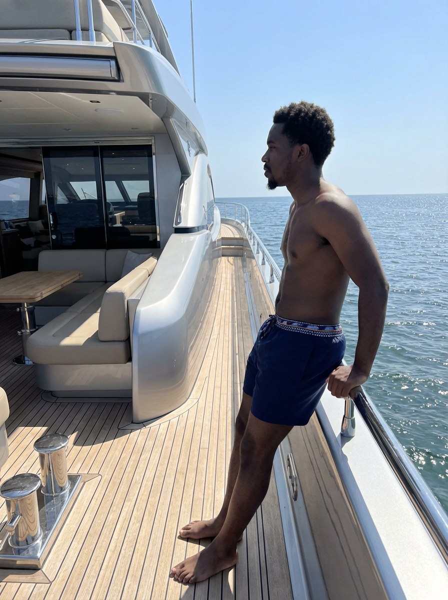 model swim shorts on a Luxury Yacht boat