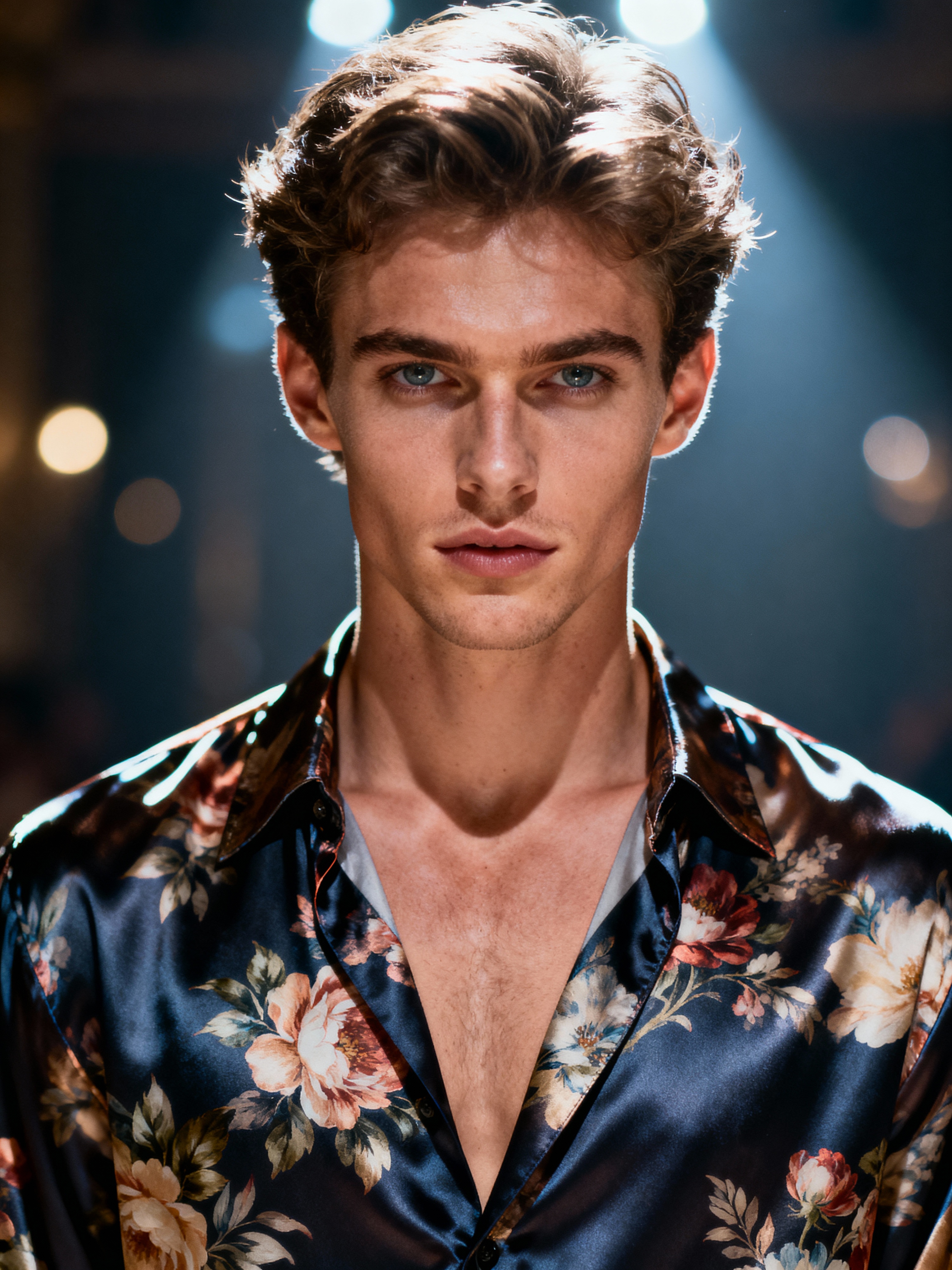 model wearing floral silk shirt in try on fashion shoot for Zara Shein H&M