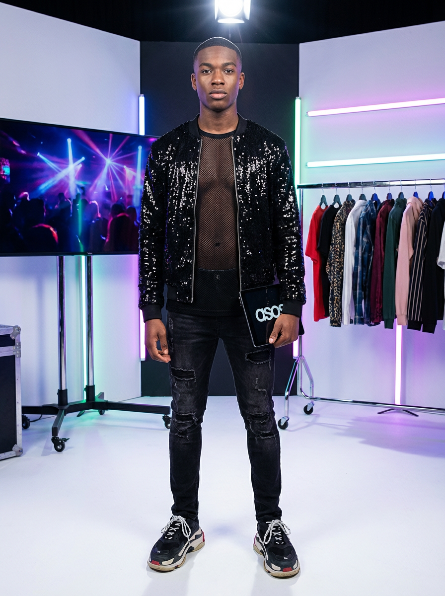 model wearing nightclub outfit in try on fashion shoot for Fast fashion brand