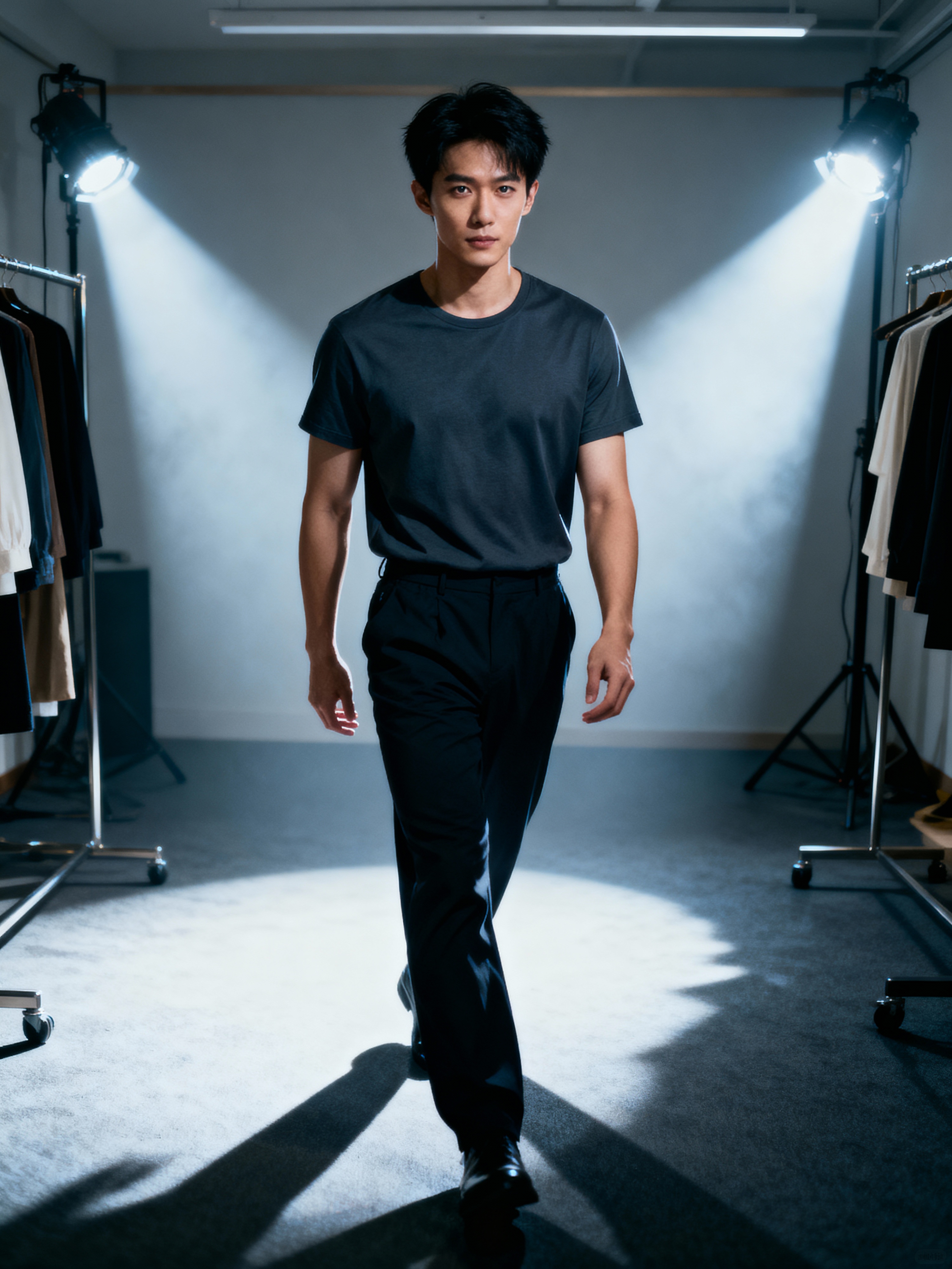 model wearing t-shirt and pants in try on fashion shoot for Zara Shein H&M
