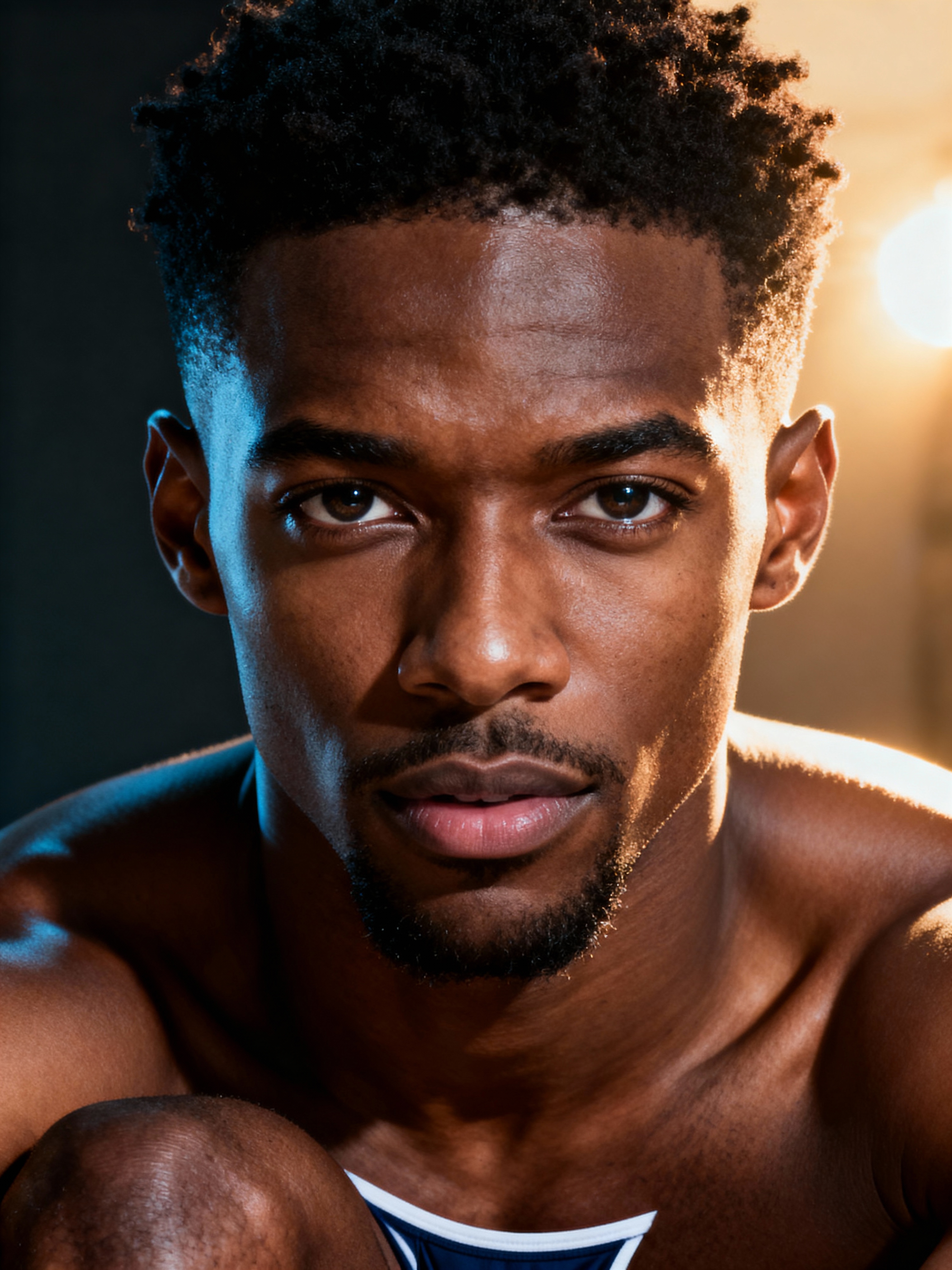 model wearing underwear in Men's Health centerfold photoshoot. intact eyes, symmetrical eyes, realistic skin texture. hyper realistic eyes. photorealistic