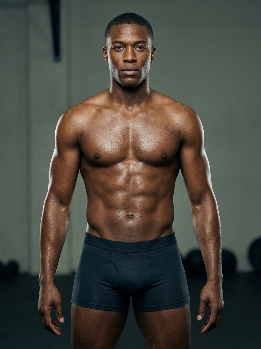 model wearing underwear in Men's Health centerfold photoshoot. intact eyes, symmetrical eyes, realistic skin texture. hyper realistic eyes. photorealistic