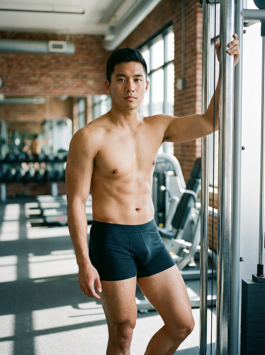 model wearing underwear in Men's Health centerfold photoshoot. intact eyes, symmetrical eyes, realistic skin texture. hyper realistic eyes. photorealistic