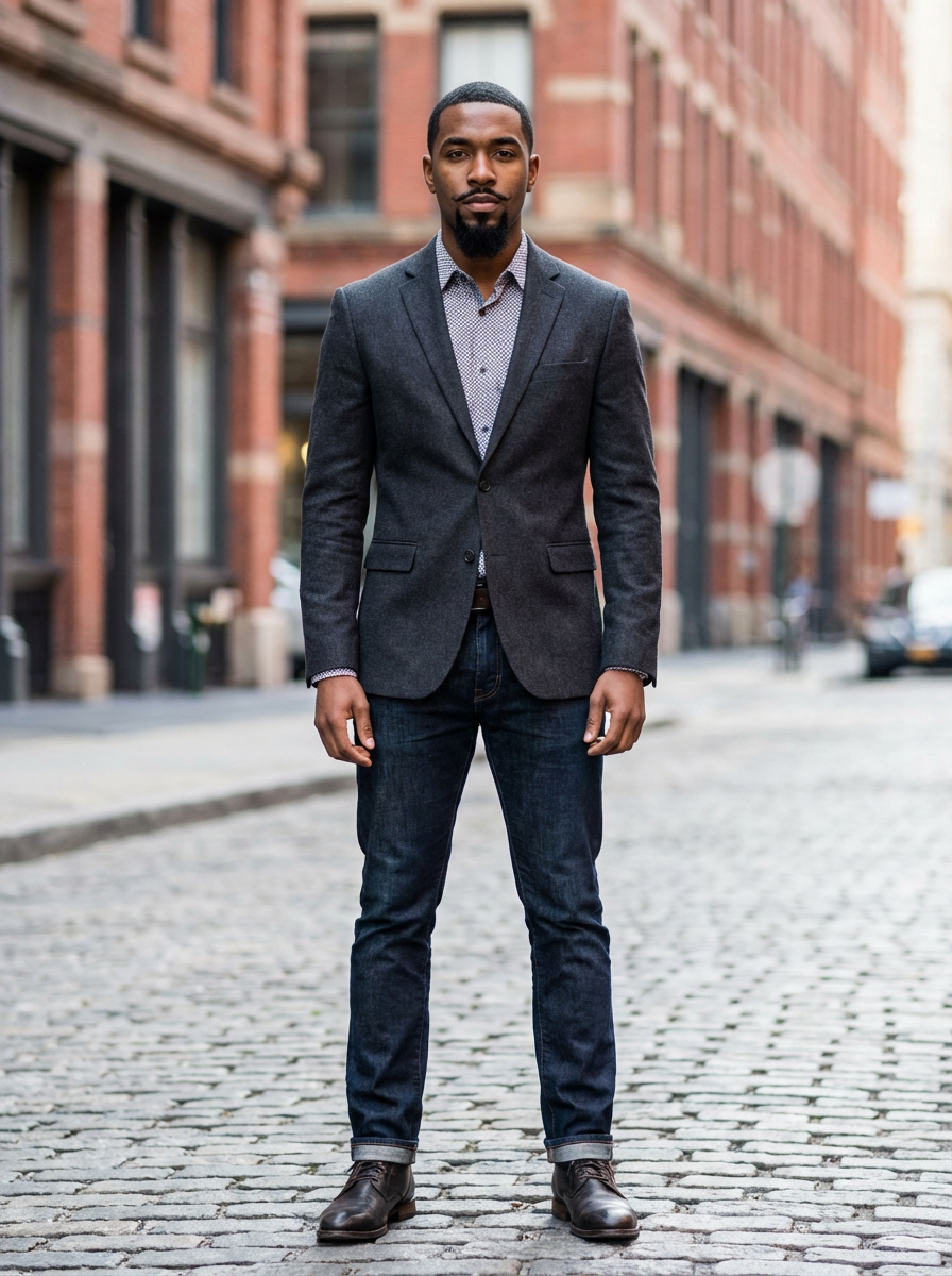 model with anchor beard, pointed chin beard with thin mustache, stylish appearance