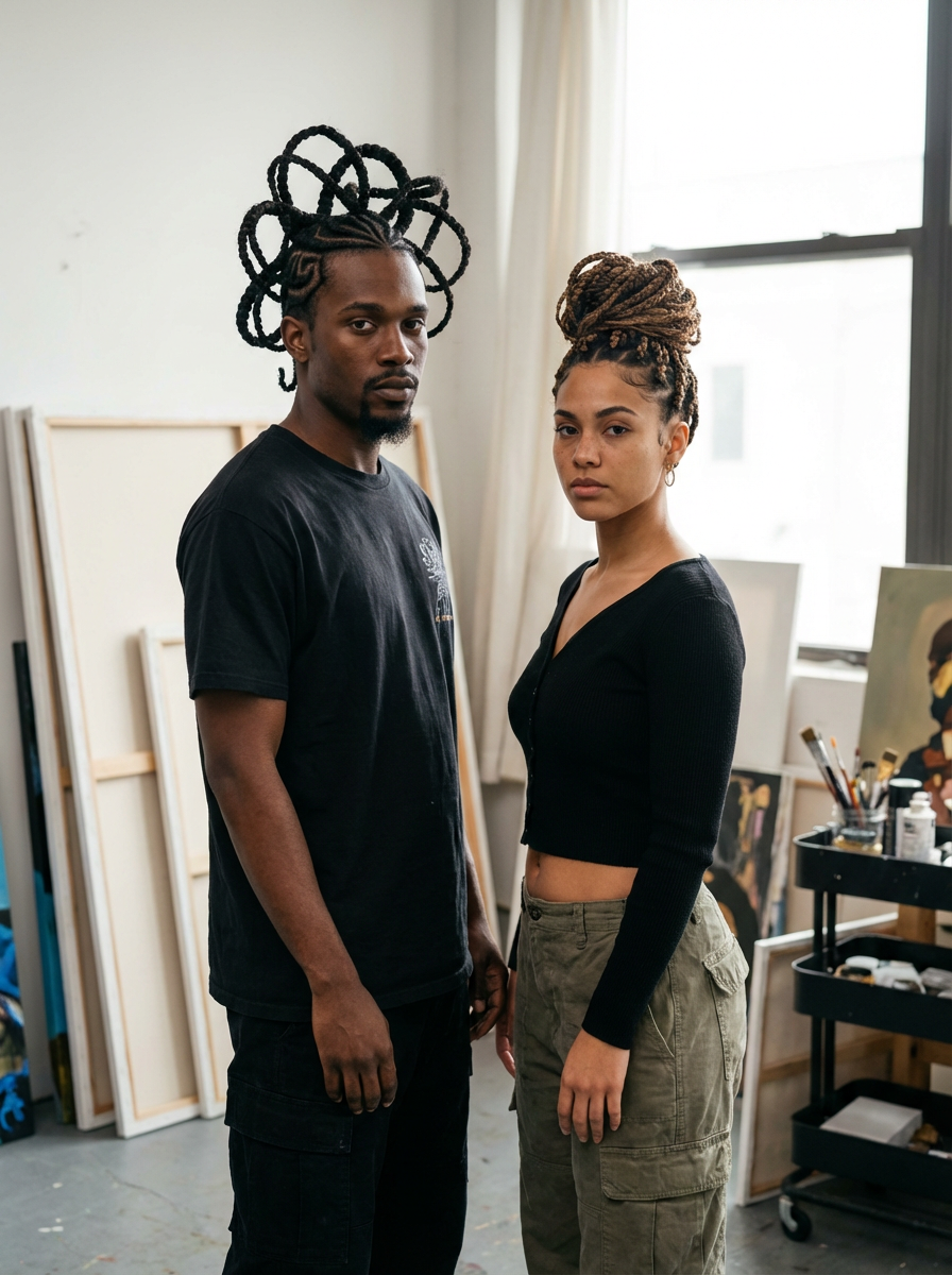 model with braided top with fade, creative hair art