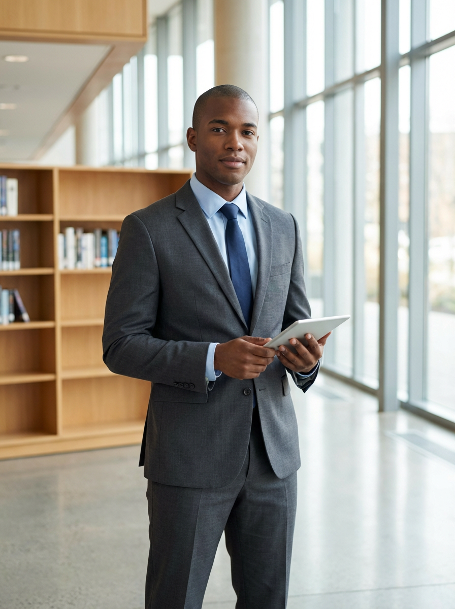 model with clean shaven face, smooth skin, fresh groomed look, professional setting